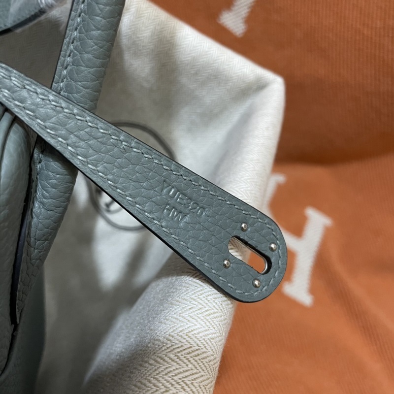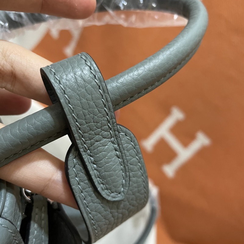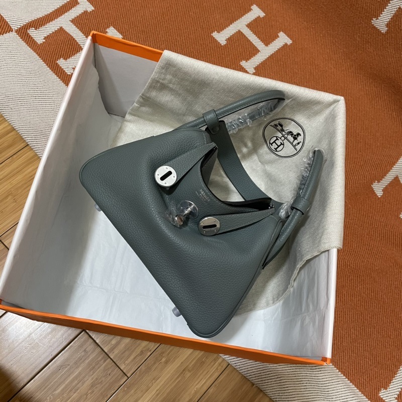 Hermes Lindy -käsilaukku, maahantuotu TC-lehmännahkaa, mantelinvihreä kulta- ja hopeasolki