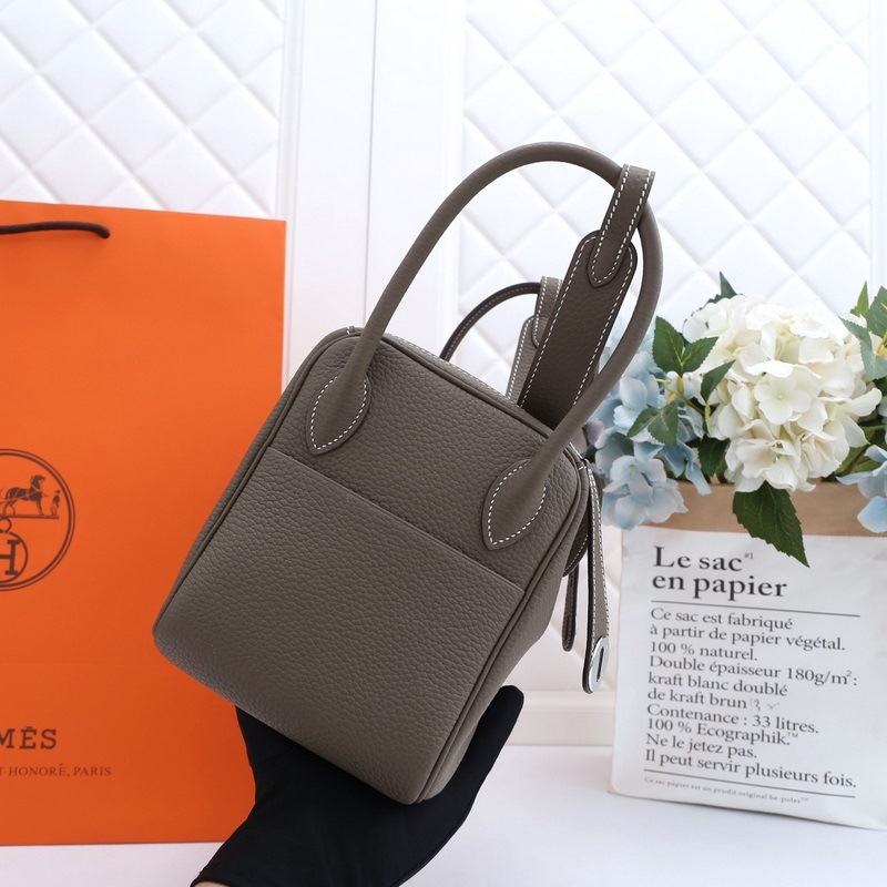 Hermes puolikäsintehty mittatilaustyönä valmistettu Lindy-käsilaukku maahantuotu TC-nahkainen lehmäkuvioinen norsunharmaa kulta- ja hopeasolki