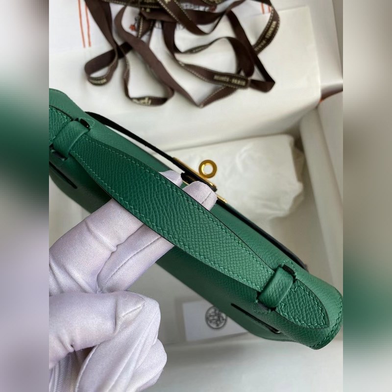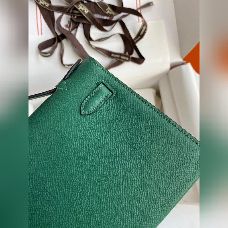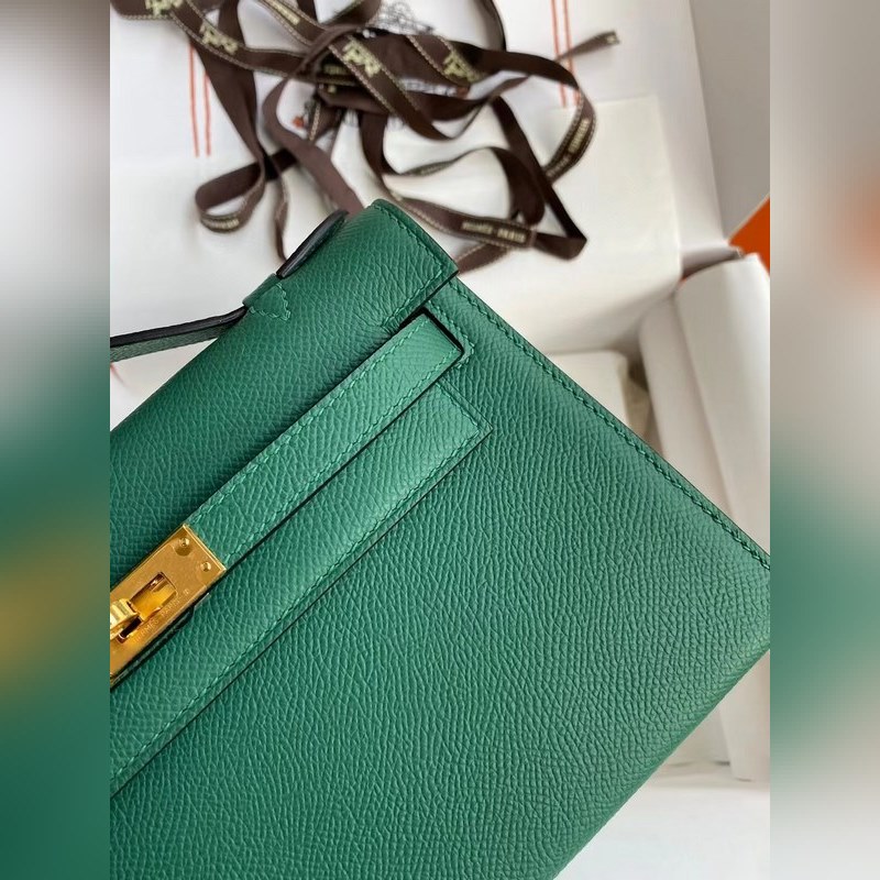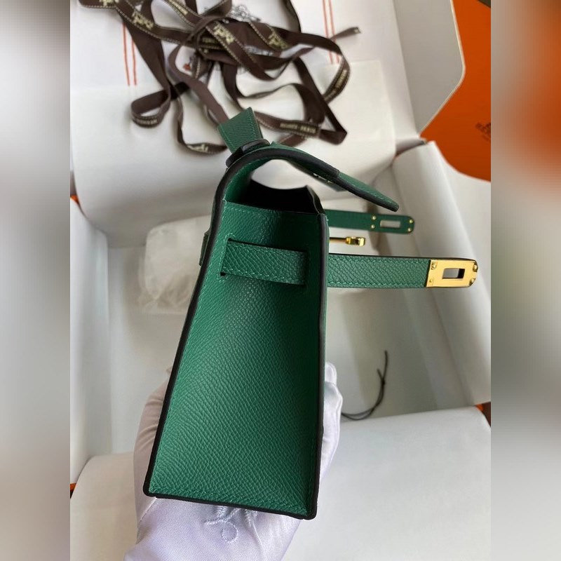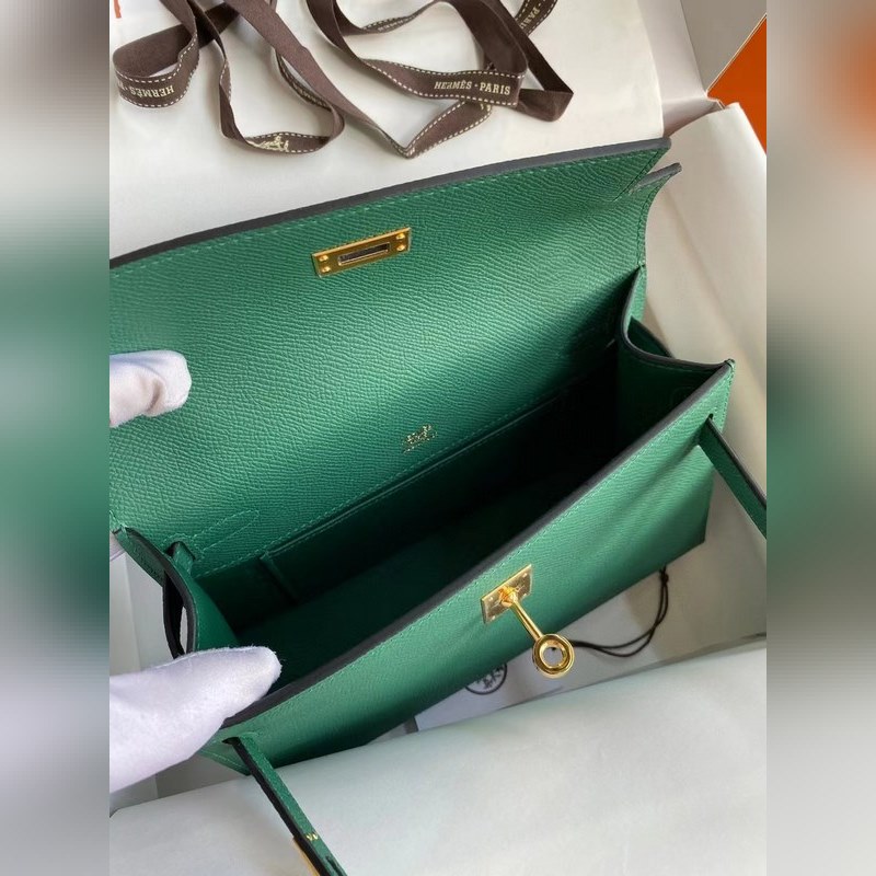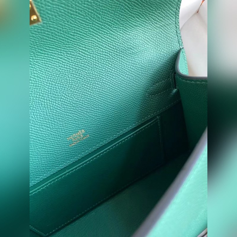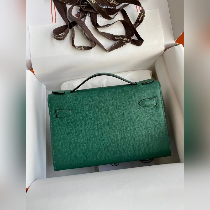 Hermes Mini Kelly Pouchette käsilaukku riikinkukonvihreä kulta- ja hopeasolki