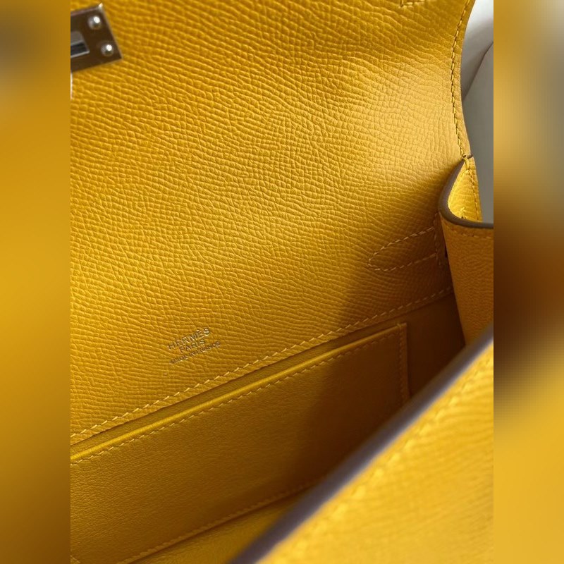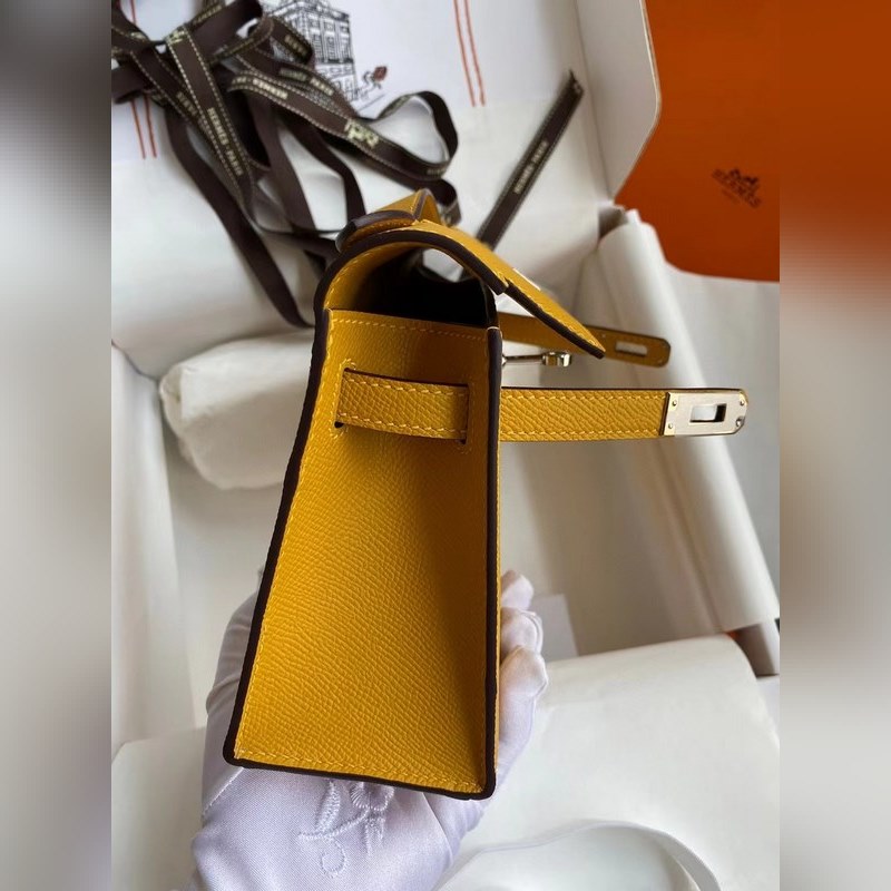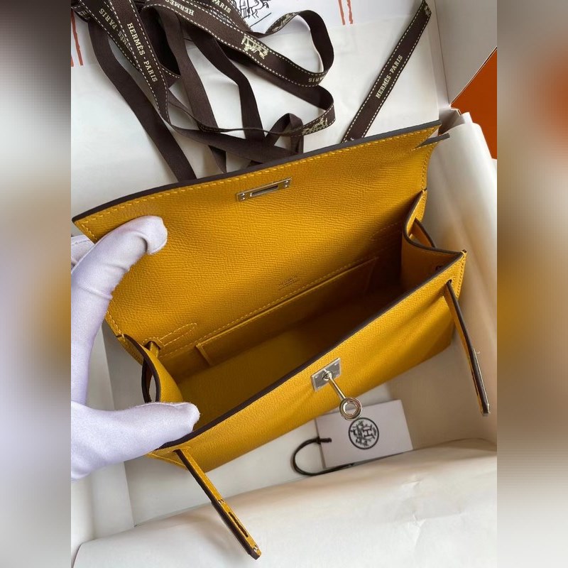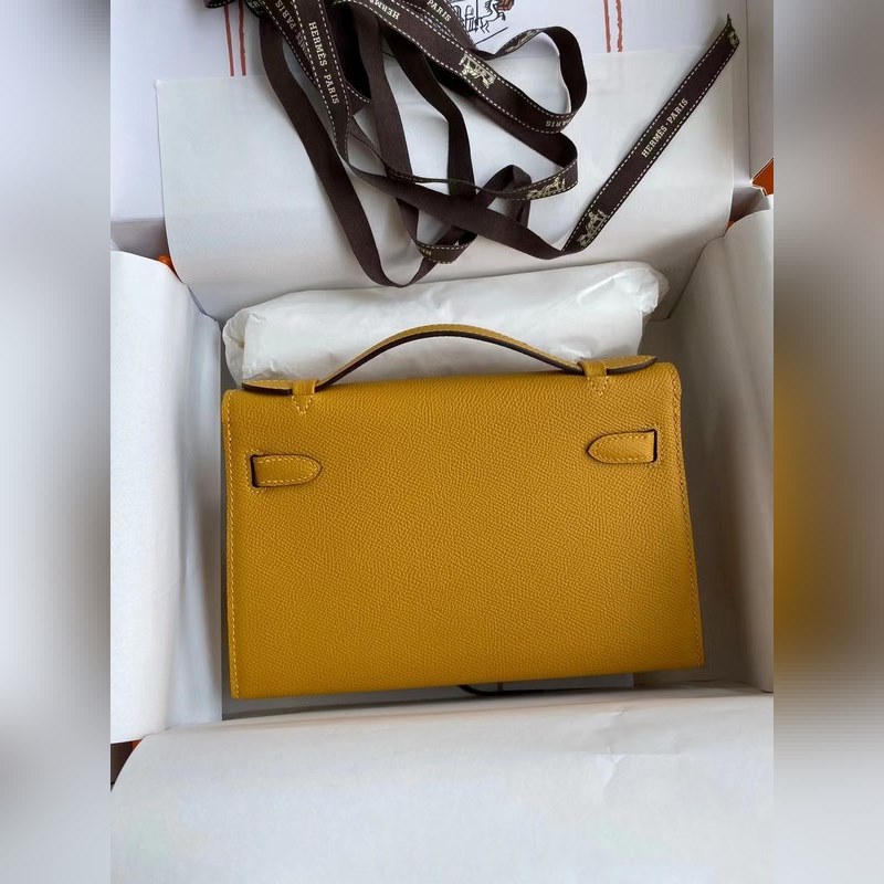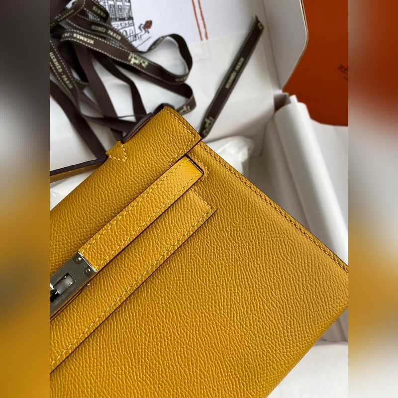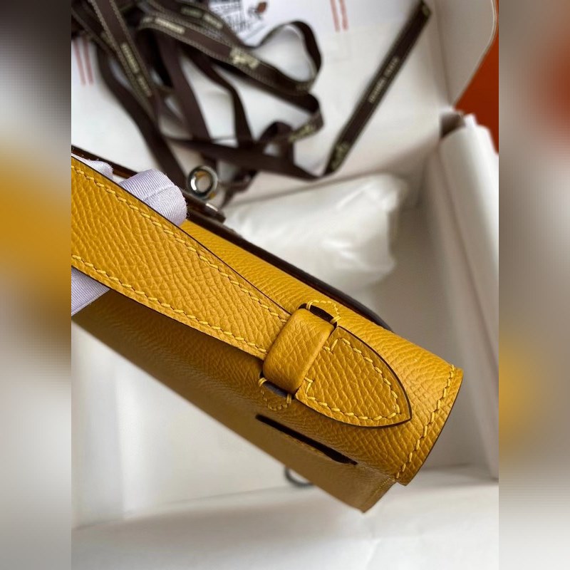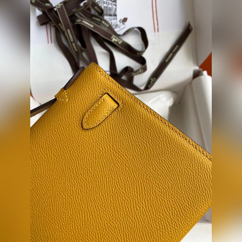 Hermes Mini Kelly Pouchette -käsilaukku Amber Gold Silver Solki