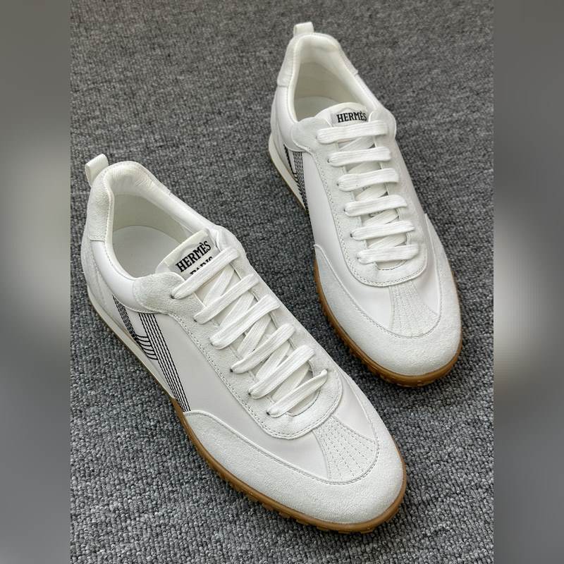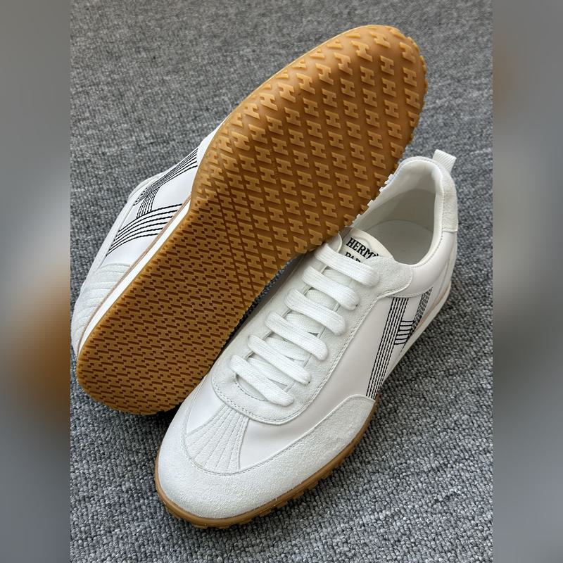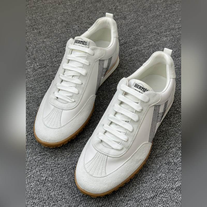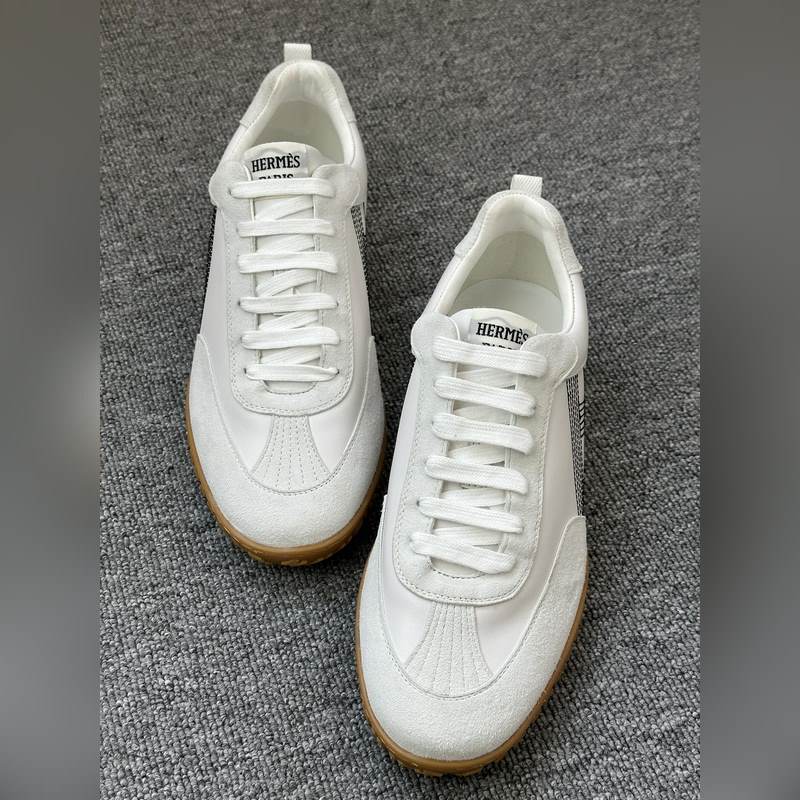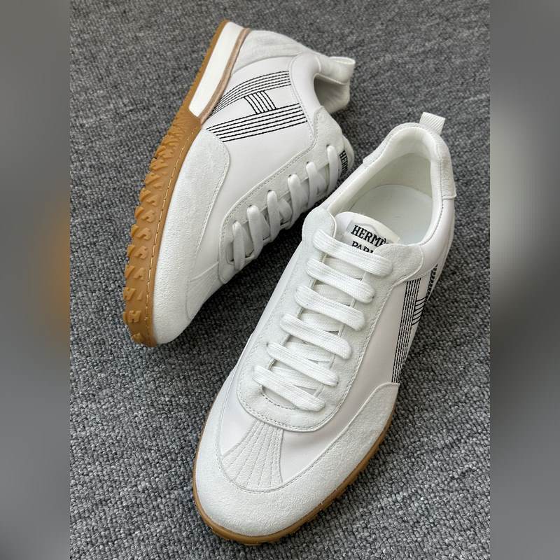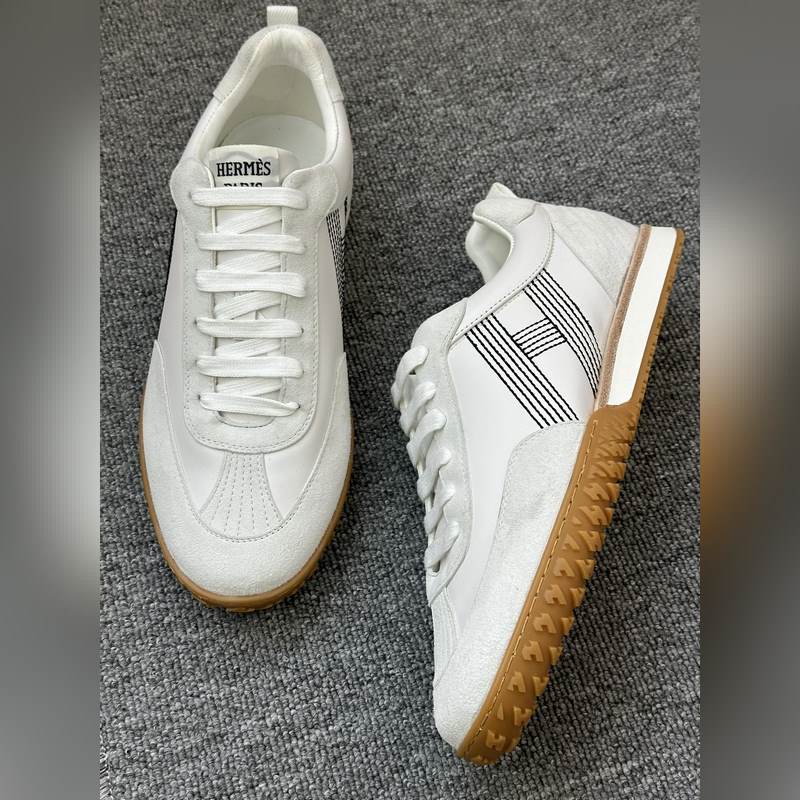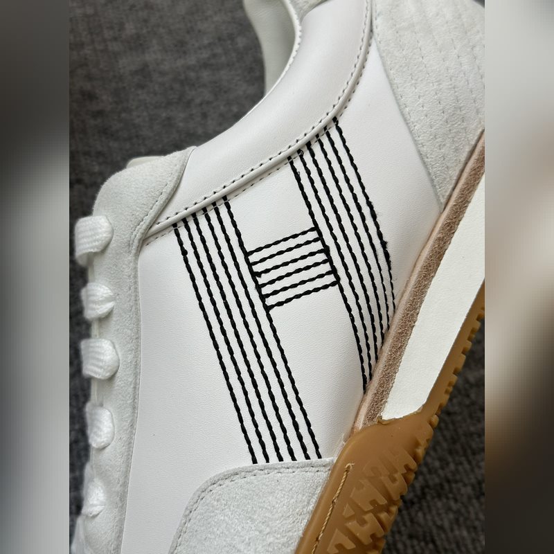 HERMS Nappan nahkaiset ja mokkanahkaiset vuohennahkaiset lenkkarit on koristeltu kontrastisilla kuvioilla ja ikonisilla “H”-yksityiskohtilla.