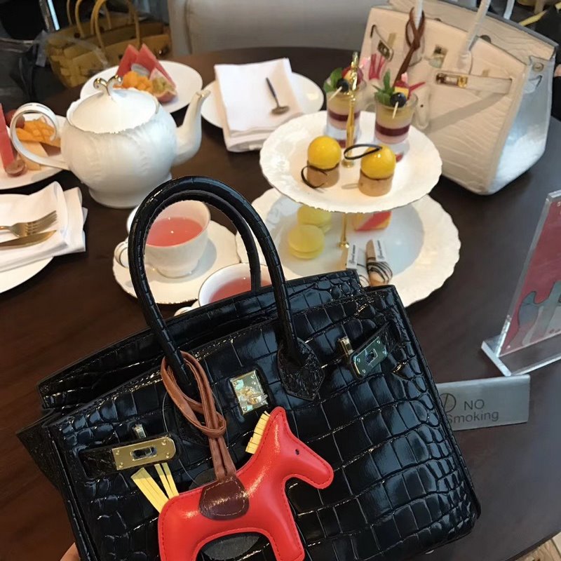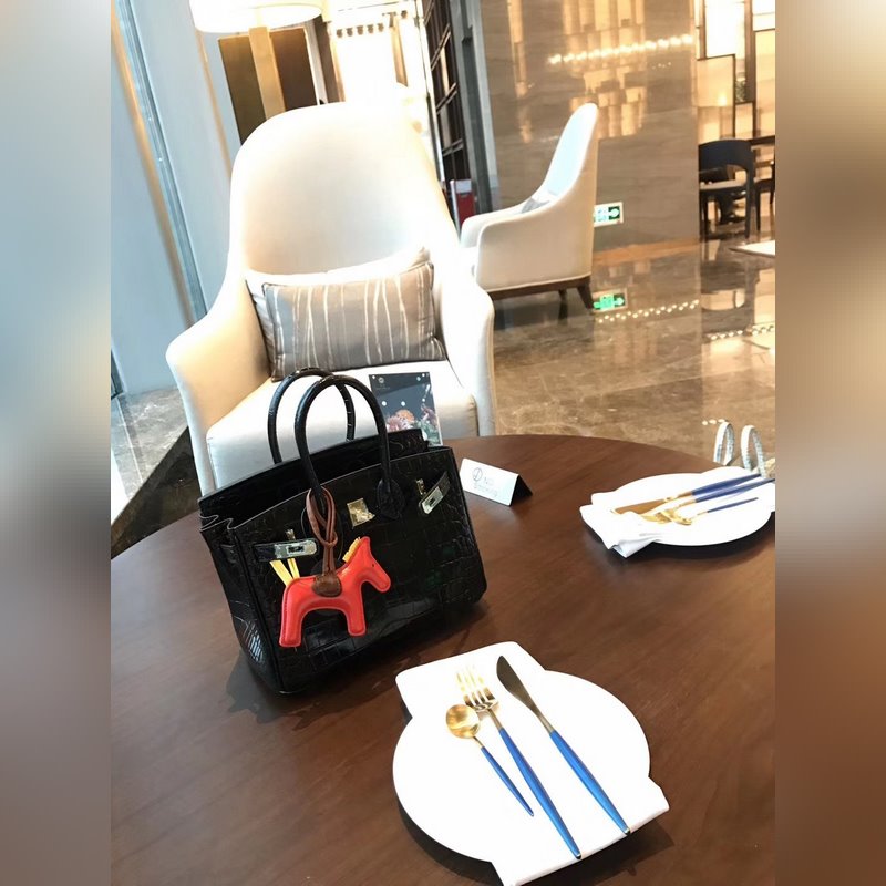 Hermès platinakrokotiilikuvio ~ musta nro: 0209618800 (25cm) nro: 0209618820 (30cm)