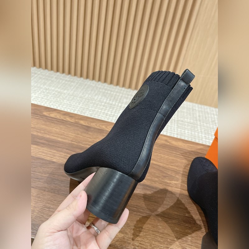Hermès-sukkasaappaat Voidaan sanoa, että nämä ovat Hermèsin tämän kauden nuorimmat lyhyet saappaat. Se on epäilemättä johtava luksustavaroiden joukossa. Jokainen tuote on syvästi juurtunut ihmisten sydämiin ja on klassinen ja suosittu. Vaikka tyylejä on vähän, ne ovat hienoja ja klassisia. Ne eivät koskaan mene pois muodista. He ovat brändi, joka ylläpitää ja arvostaa arvoaan. On harvinaista todella rakentaa tällaista mainetta kulutustavaroiden joukossa. Tämä pari saappaat on tämän merkin klassinen tyyli. Se on yksinomaan Hermèsille neulottu nilkkurit, joka on koristeltu vasikannahalla “Jingle Lock” -kuviolla ja “Book Seal” -kuviolla, jalustimen muotoisilla koroilla. Klassikot ovat yhä kauniimpia pitkän historian jälkeen. Pieni määrä kanavatavaraa siirretään ulos. Se näyttää voittamattomalta jaloissa, erityisen herkältä ja muokkaa jalan muotoa. Tuodut neulotut päälliset ovat erittäin hengittäviä eivätkä anna jaloistasi tukkoista. Myös korkokengät on muotoiltu, tämän vuoden uusimmat hevosenkengät. Lampaannahkaiset pehmusteet, italialainen nahkainen ulkopohja, keskikorko 6 cm. Koko 35-39M