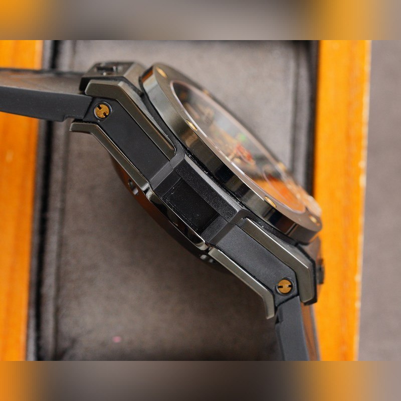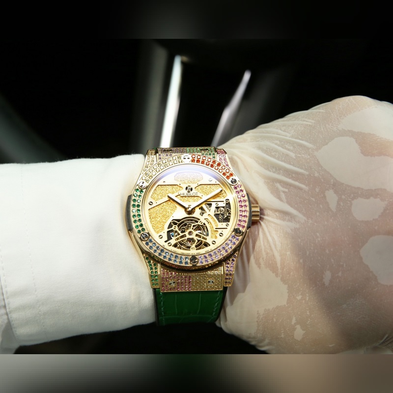 Rohkea ja peloton, lyö kovaa, jota kutsutaan “HUB” “Homblotiksi”, BigBang Big Bang Element Material Chronograph v2 -version kotelo on valmistettu tuodusta 316 ruostumattomasta teräksestä, ja siinä on räjähtävä muotoilu. Se on varustettu 7750 muunnetulla “HUB1242” automaattisella liikkeellä, välittömällä kronografin käynnistyksellä ja yhdellä näppäimellä, jotka palauttavat täydellisesti alkuperäisen toiminnon, toissijaisen painonlisäyksen ja automaattisen heilahduksen, mikä saavuttaa vakaamman matka-ajan ja erittäin alhaisen korjausnopeuden. Hihna on valmistettu luonnontammesta kumista, joka on erittäin vedenpitävä, pehmeä ja mukava. Kellopeili on valmistettu luonnon safiirilasista, joka on kulutusta ja naarmuuntumista kestävää, läpinäkyvää ja virheetöntä. Nuorena brändinä Hublot on maalannut uudelleen nuorekkaan elinvoiman huippuluokan valmistuksessa loistokkaalla persoonallisuudellaan ja ainutlaatuisella muotoilullaan, ja se tuntee nuoruuden vapauden kaikkien kanssa