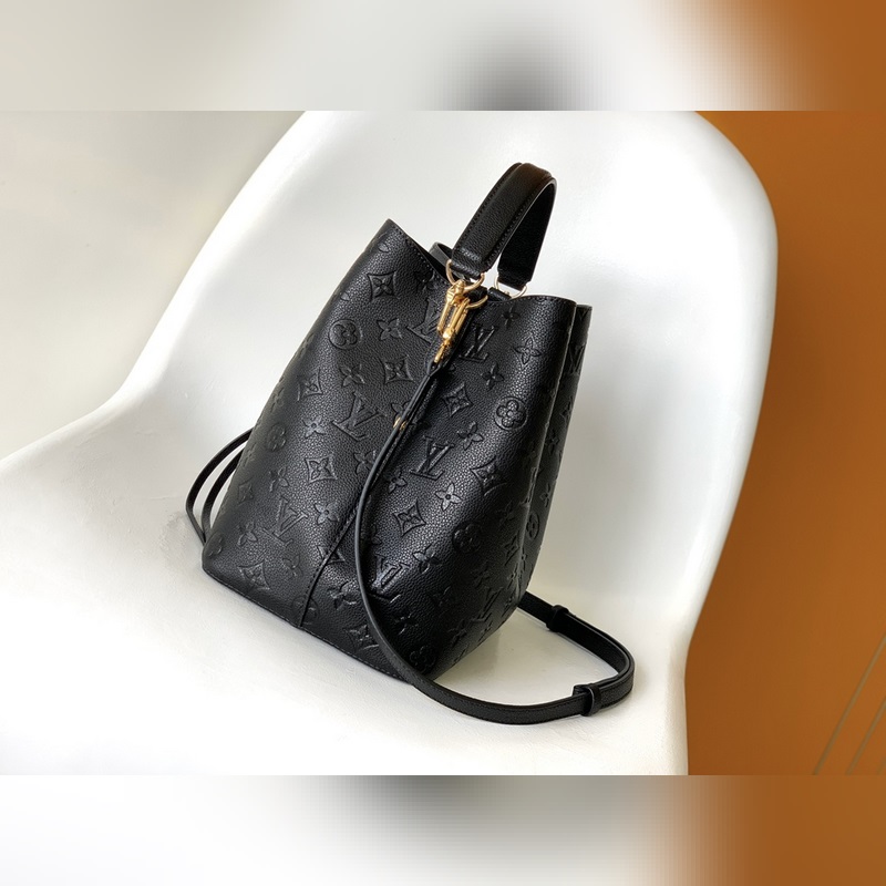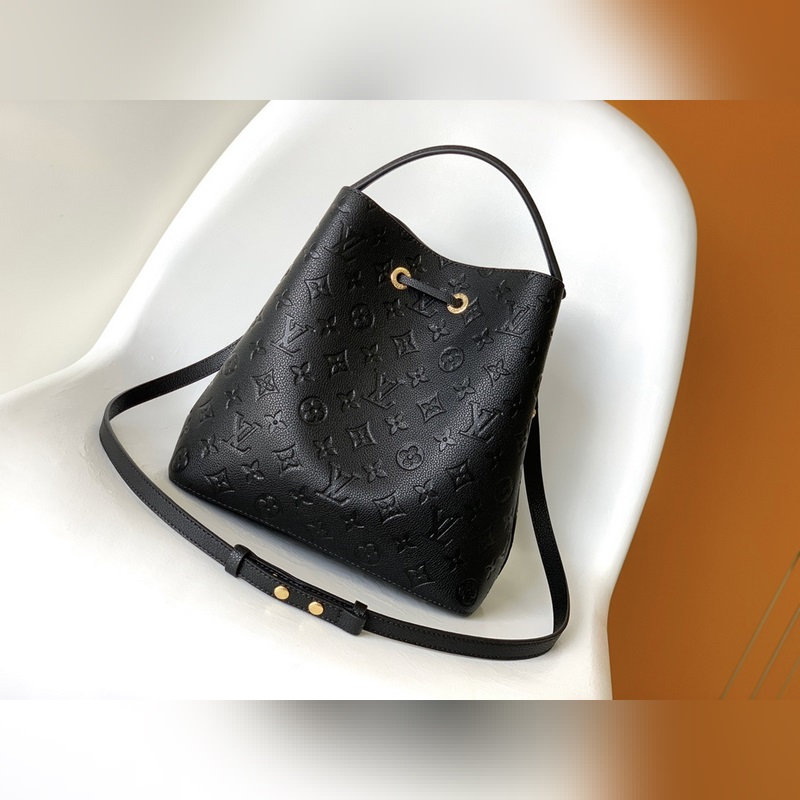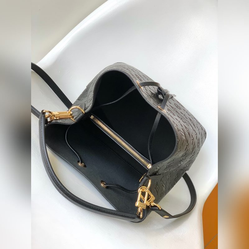 M45256 Musta M45306 Sininen M46526 Kermanvalkoinen toppi Alkuperäinen M45307 Kermanvalkoinen ruskealla Topilla Alkuperäinen NéoNoé Medium Bucket Bag on valmistettu Monogram Emreinte -kohokuvioidusta nahasta, joka on tyylikkäämpi nahkaisten kiristysnyörien ja hienojen silmukoiden koristelu. Kevyt rakenne sopii vartalon rytmiin, ja irrotettava yläkahva tai irrotettava ja säädettävä olkahihna tekevät siitä mukavan kantaa käsissä, olkapäällä tai vartalon poikki. 26,0 x 26,0 x 17,5 cm (pituus x korkeus x leveys)