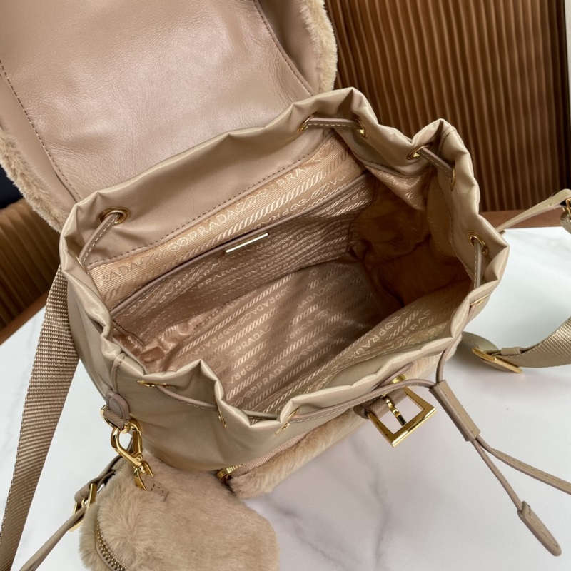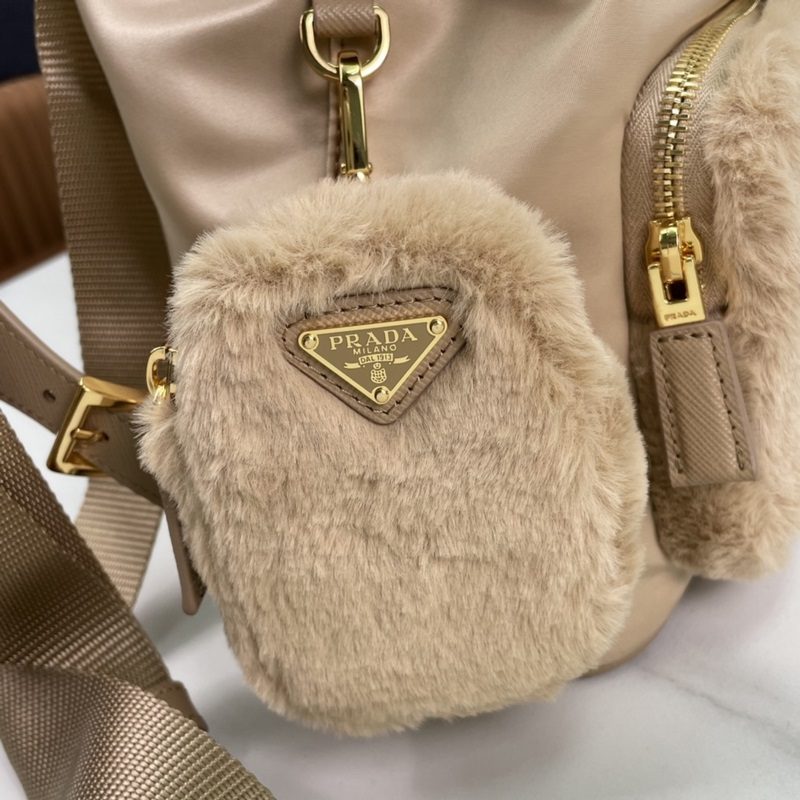Huippulaatuinen alkuperäinen uusi villareppu 1BZ074 Tämä moderni design-reppu yhdistää innovatiivisen kierrätetyn Re-Nylon-nylonlangan käytännöllisyyden ja villanahan pehmeän kosketuksen ja talvisen tuntuman. Tämä monipuolinen rento reppu on koristeltu metalliesineillä, tilavalla vetoketjutaskulla ja modernilla ja tyylikkäällä irrotettavalla etutaskulla. Reppu on hieno ja tyylikäs, ja emaloitu kolmion muotoinen metallilogo korostaa merkin klassisia ominaisuuksia. Toinen reppu, joka ei koskaan mene pois muodista. Hyvät naiset. Ole nopea ja hanki se