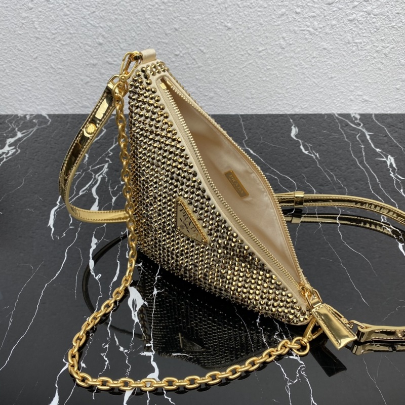 Huippualkuperäinen 2024 uusi kolmiokristallilaukku 1BC190 on kauttaaltaan koristeltu jäljitelmillä. Kolmioiden syvällinen tutkiminen inspiroi uusia geometrisia muotoja ja tulkitsee uudelleen Pradan pitkäaikaisen koodin. Ikoninen kolmio on esitetty tässä yksinkertaisessa satiinikäsilaukussa, ja kristallien jäljitelmät peittävät laukun rungon loistaen upealla viehätysvoimalla. Emaloitu metallikolmiologokoriste tulkitsee yksinkertaista esteettistä käsitettä. Jos pidät siitä, ole nopea ja osta se. Koko: pituus 14 cm * korkeus 6 cm