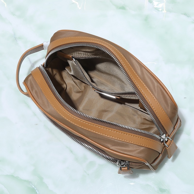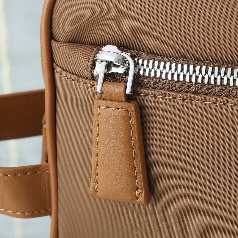 Huippulaatuinen alkuperäinen malli 819 uusin korkki beige. Tämä käytännöllinen ja tyylikäs pieni laukku on valmistettu kierrätetystä nylonista (Re-Nylon), innovatiivisesta kankaasta, joka on peräisin kierrätetystä ja puhdistetusta muovista meressä. Hieno ja kompakti, ulkotasku, koristeltu nahkaverhoilulla, vetoketjullinen tasku ja koristeltu ikonisella emaloidulla kolmion muotoisella metallilogolla. ●Kahvalla