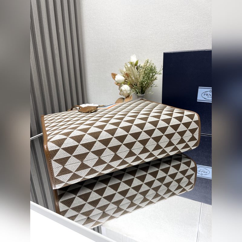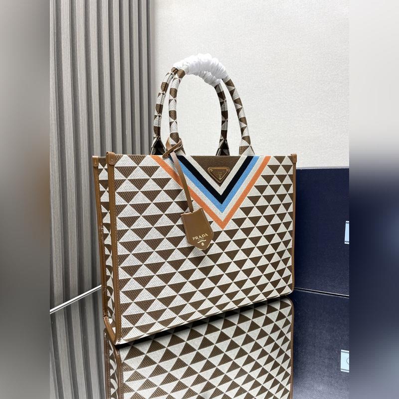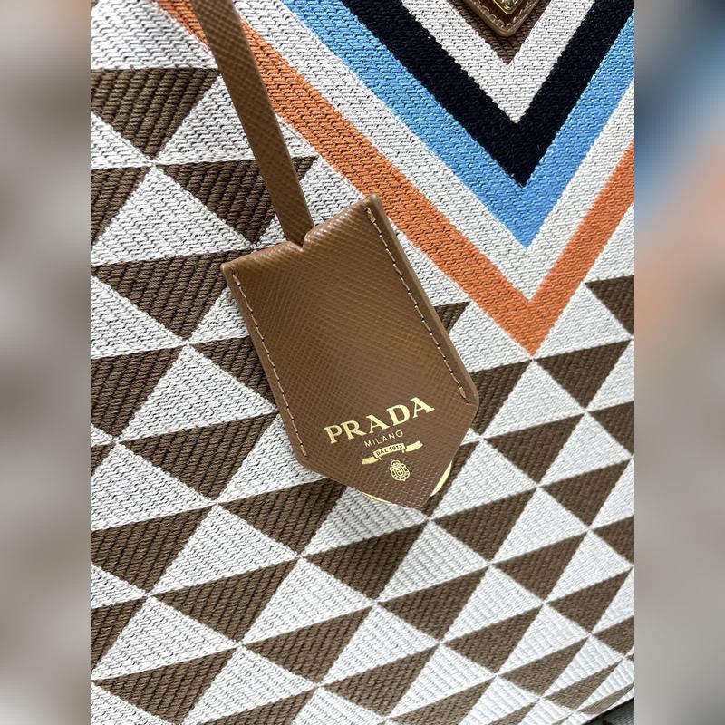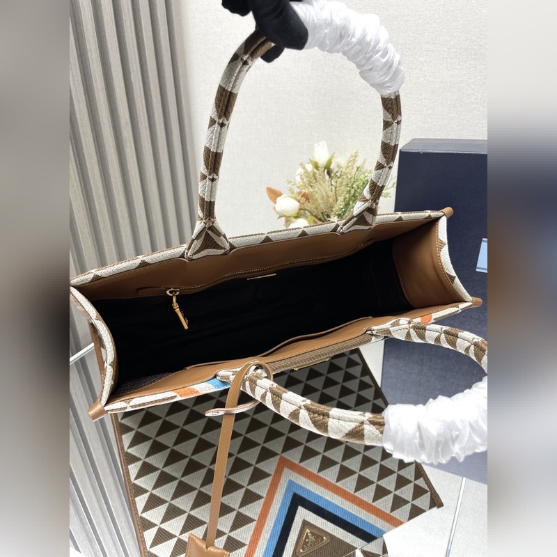 Huippuluokan alkuperäinen kirjailtu kangaskassi 1BA356 nauha isokokoinen ilman pitkiä olkahihnoja Tässä brodeeratussa kantolaukussa on käytetty maahantuotua Saffianon nahkaa ja ainutlaatuisia kirjailtuja kankaita