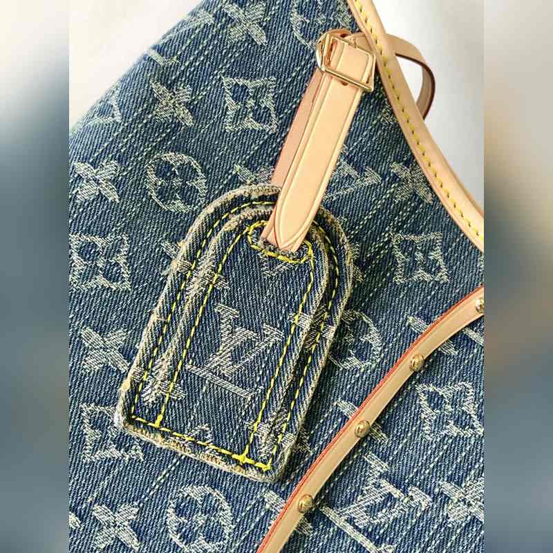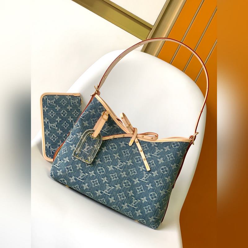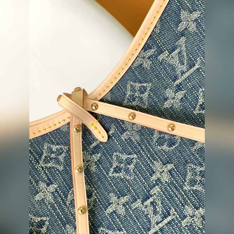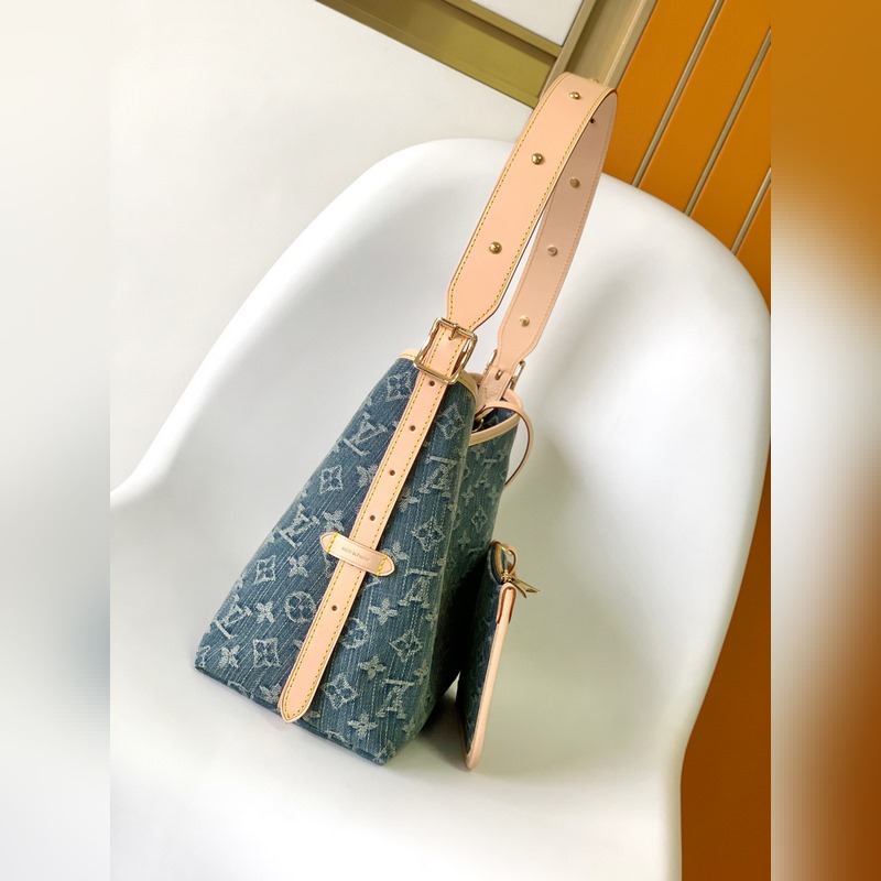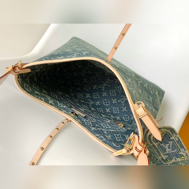 Very stylish and practical! The denim Louis Vuitton bags fit perfectly and are easy to carry. Love the adjustable strap and detachable clutch.