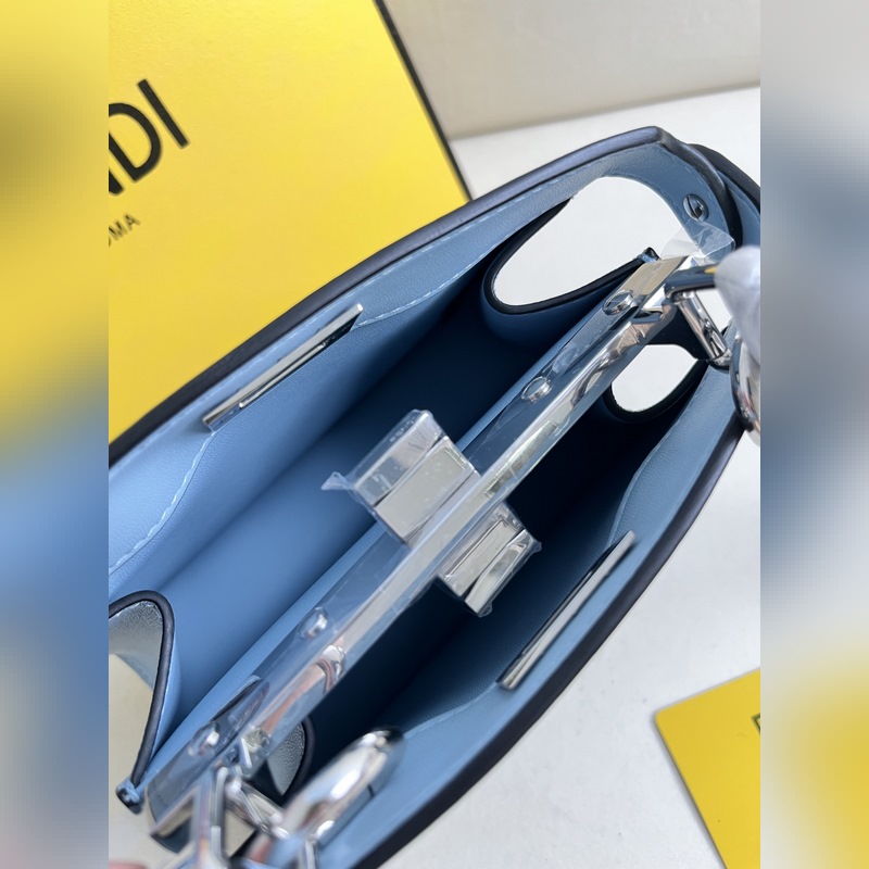 eekaboo ISeeU etite ljusblå handväska i nappaläder mer detaljer Ikonisk eekaboo ISeeU handväska, liten och söt. Tillverkad av ljusblått laminerat nappaläder, med klassiska vridlås på båda sidor. Fodrad insida i samma färg, två fack åtskilda av en hård mellanvägg, med innerfickor och guldmetalldelar. Utrustad med handtag och justerbar, avtagbar axelrem, kan bäras för hand eller crossbody. Tillverkad i Italien Material: 100% lammskinn, foder: 100% lammskinn Djup: 11 Längd: 20 Höjd: 15,5 Artikelnummer: Stilnummer: 0228