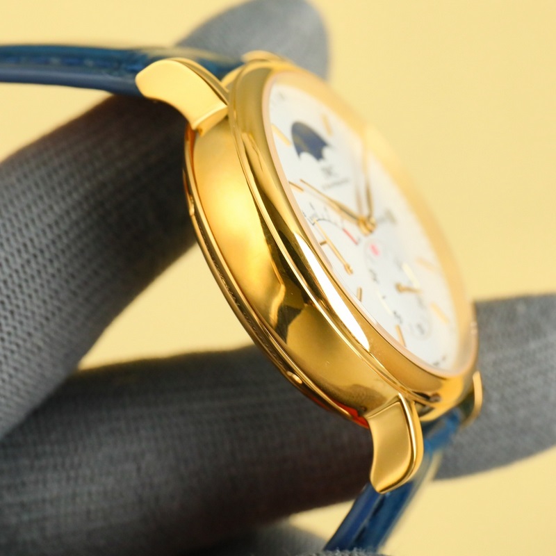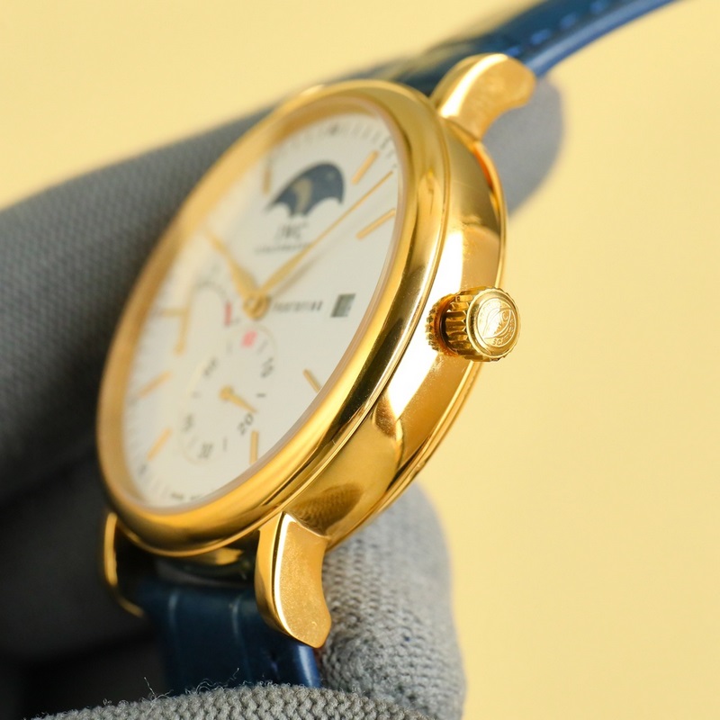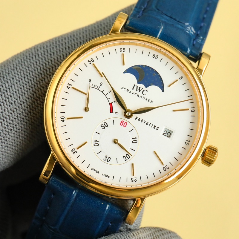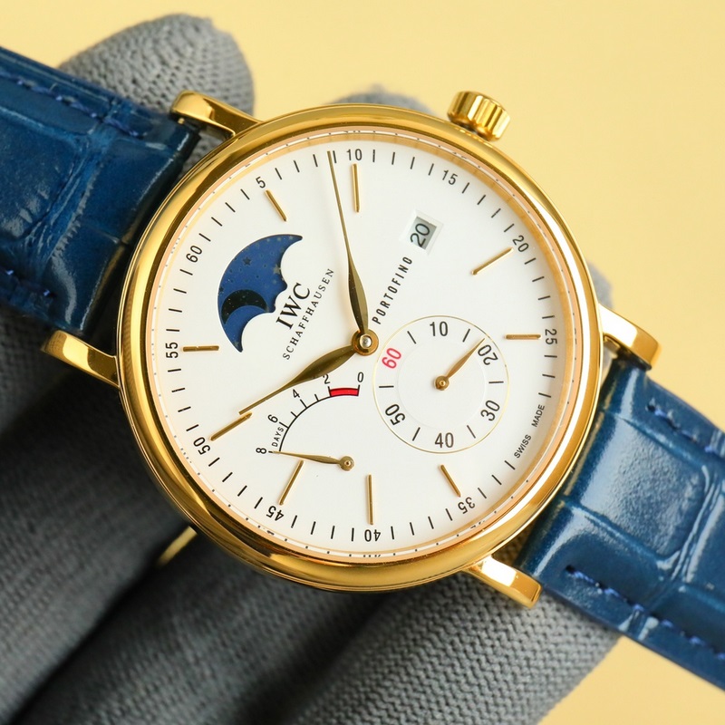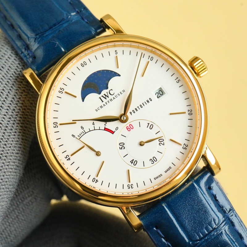 Kotelo on 316L ruostumatonta terästä, kiillotettu ja hyvin pyöreä. Pieni sekuntikello sijaitsee kello 6 osoittimen pysäytystoiminnolla, varustettu kiinteällä naula-asteikolla ja roomalaisilla numeroilla, kineettinen koristelu lisätään kello 9:ksi ja PORTOFINO (Portofino Englanti) ja tarkka etäisyyskalenteri-ikkuna on kirjoitettu kello 3, mikä on symmetrinen kaaren muotoisen kineettisen koristelun kanssa. 12-asentoa vastaava kuun vaiheen sijainti on yhdenmukainen alkuperäisen kanssa. Voimme huomata, että tämän kellon kalenteriikkuna sijaitsee kellon reunassa ja kalenterin fontti on yhdenmukainen alkuperäisen kanssa. Pajunmuotoiset osoittimet osoittavat tunnit ja minuutit vastaavasti, kaksipuolinen heijastamaton kaareva safiiripinnoitettu peili, hihna italialainen vasikannahka, itse kehitetty automaattinen käämitys mekaaninen liike, vakaa liike, tarkka matka-aika. IWC:n häikäisevin läpinäkyvä pohjakello. Sopii kaikenlaisiin liiketilaisuuksiin, yksinkertainen ja hienostunut mutta tyylikäs. Tervetuloa kaikki kelloystävät arvostamaan sitä.