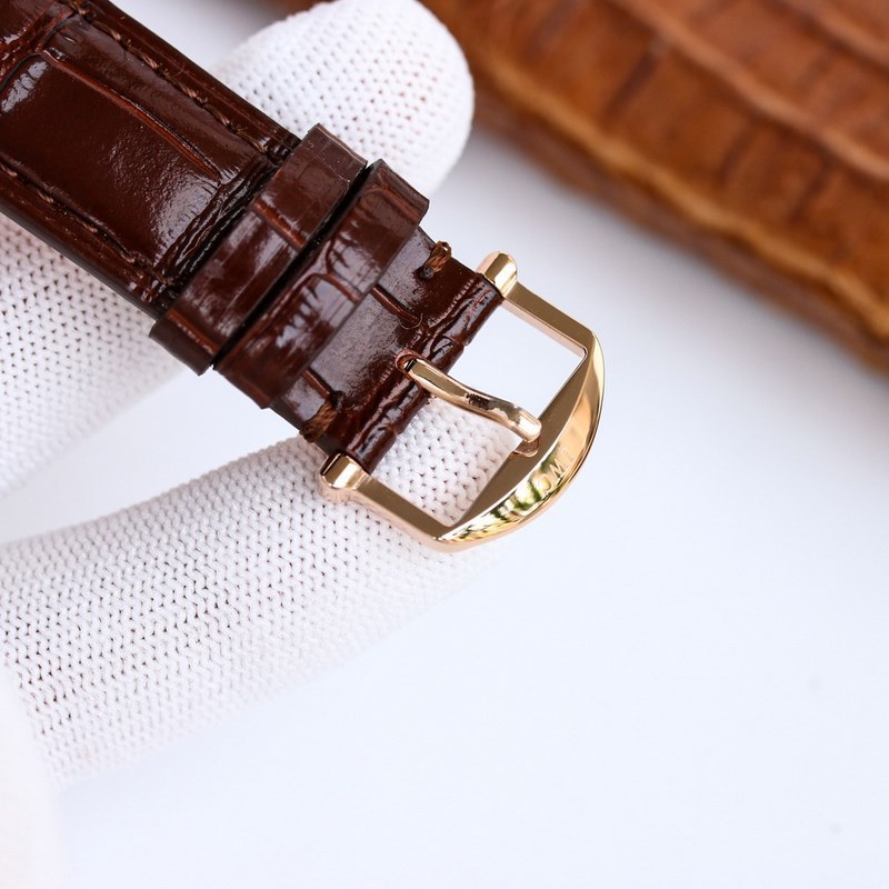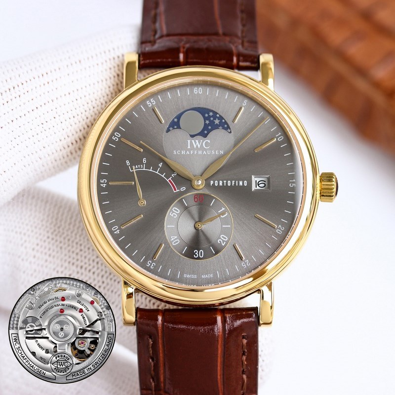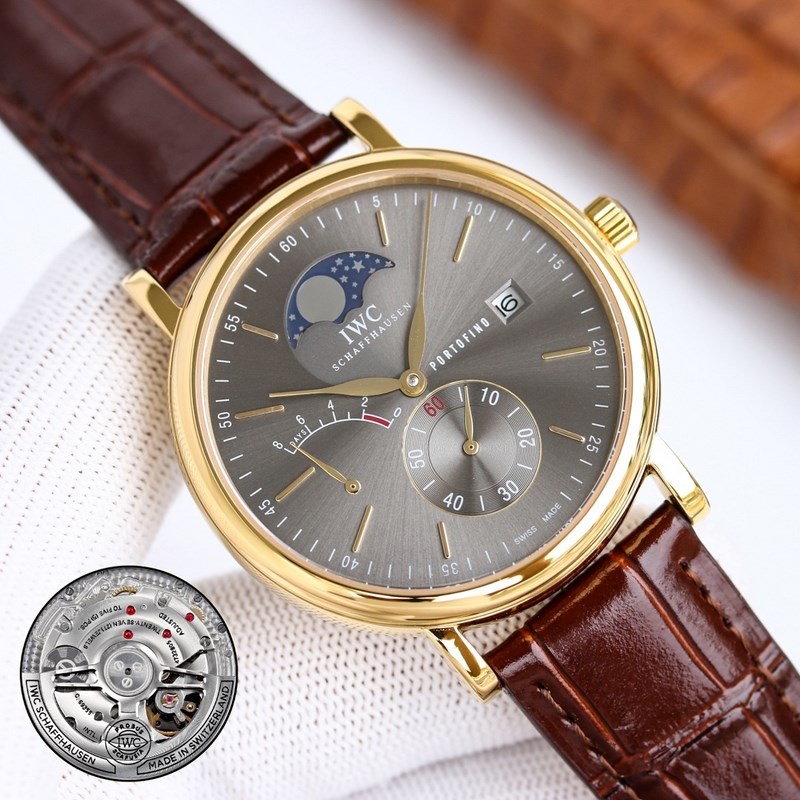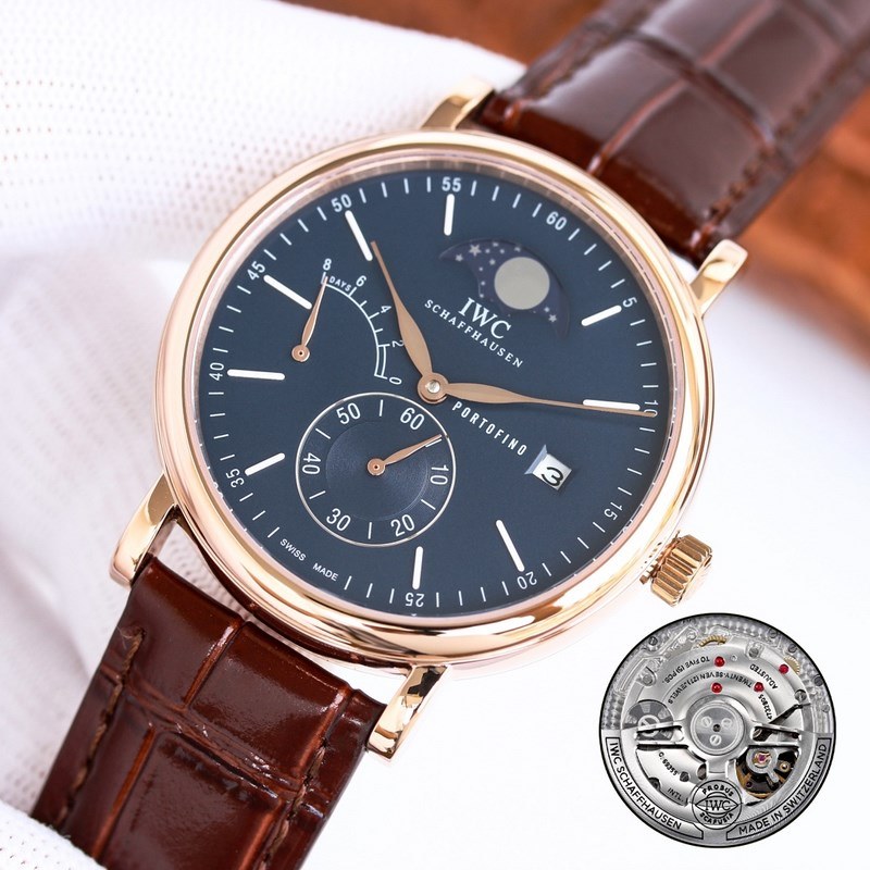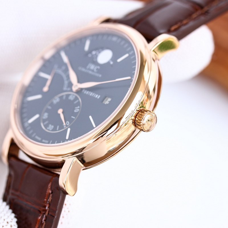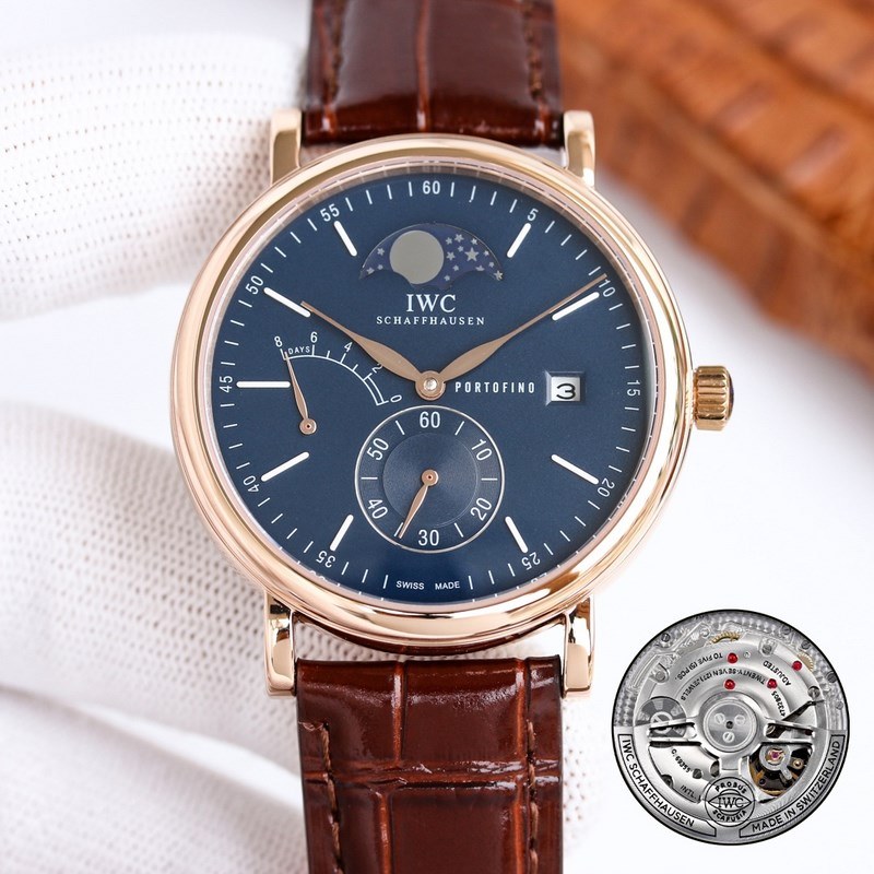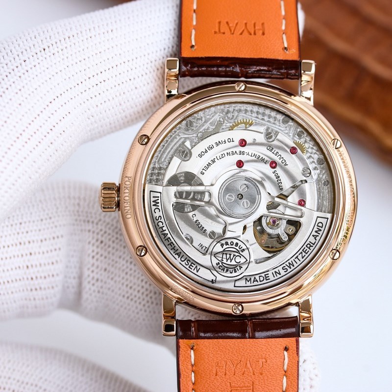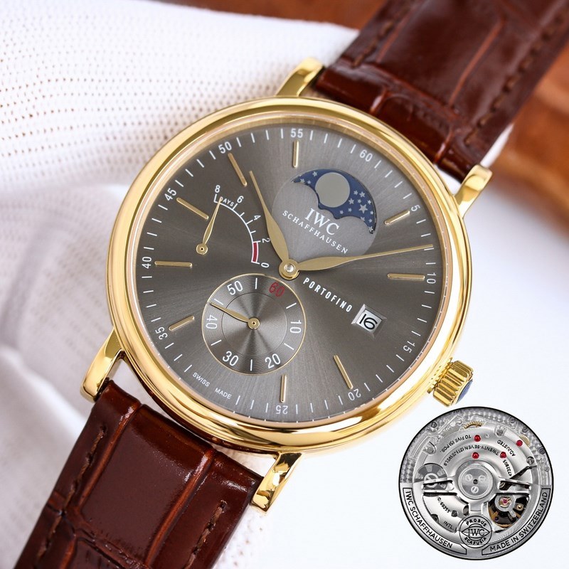 Case 316L ruostumattomasta teräksestä valmistettu kotelo, kiillotettu ja erittäin pyöreä. Pieni sekuntiosoitin sijaitsee kello 6 stop-second-toiminnolla, varustettu kiinteällä naula-asteikolla ja roomalaisilla numeroilla, kineettisen energian koristelu lisätään kello 9:ksi ja PORTOFINO (englanniksi Portofino) ja tarkka etäisyyskalenteri-ikkuna on kirjoitettu kello 3:ksi, joka on symmetrinen kaaren muotoisen liike-energiakoristeen kanssa. 12-asentoa vastaava kuun vaiheen sijainti on yhdenmukainen alkuperäisen kanssa. Voimme huomata, että tämän kellon kalenteriikkuna sijaitsee kellon reunassa ja kalenterin fontti on yhdenmukainen alkuperäisen kanssa. Pajunmuotoiset kädet osoittavat tunnit ja minuutit, ja kaksipuolinen heijastamaton kaareva safiiripinnoitettu peilihihna on italialaista vasikannahkaa. Liike on itsenäisesti kehitetty automaattisella käämitysmekaanisella liikkeellä, joka on vakaa ja tarkka. IWC:n häikäisevin läpinäkyvä kello. Sopii kaikenlaisiin liiketilaisuuksiin, yksinkertainen ja hienostunut menettämättä eleganssia. Tervetuloa kaikki kelloystävät arvostamaan sitä.