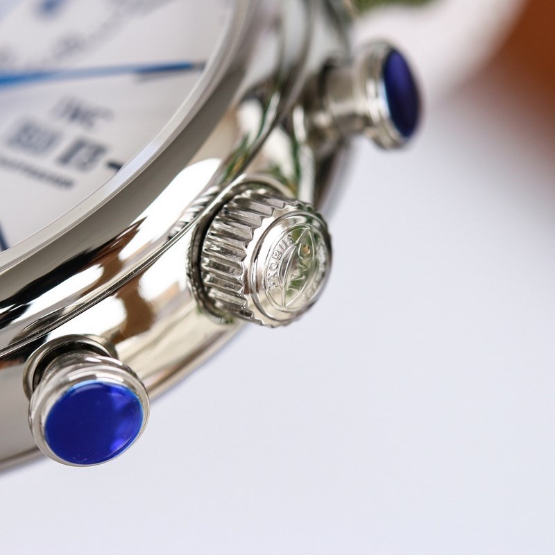 Kotelo on valmistettu ruostumattomasta teräksestä ja huolellisen kiillotuksen jälkeen se kiiltää herkkää. Korvakkeet ovat luonnollisesti kaarevia ja integroituvat täydellisesti koteloon, ja niissä on sileät linjat ja kiiltävä kiilto. Kello on varustettu Dandong 7750 modifioidulla 4601 automaattisella mekaanisella liikkeellä, joka toteuttaa kaikki alkuperäisen kanssa yhdenmukaiset toiminnot, suljetulla pohjalla, pohjaan kaiverretulla merkkipäivälogolla, italialaista vasikannahkaa neulasoljella, helppokäyttöinen ja erinomainen kädessä pidettävä vaikutus. IWC Portofino Chronograph tulkitsee elävästi Portofinon loputonta klassikkoa. Kaikki kelloystävät ovat tervetulleita arvostamaan sitä.