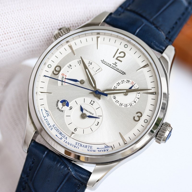Jaeger-LeCoultre Master Series -kellon ikoninen ominaisuus on usean aikavyöhykkeen näyttötoiminto. Se esittelee koko maailman ranteellasi, vaikka huomioidaan kesäajan erityispiirteet. Kello on valmistettu ruostumattomasta teräksestä, jonka halkaisija on 42 mm. Voidaan sanoa, että kellotaulun asetteluun on panostettu paljon. Siinä on monia monimutkaisia toimintoja, mutta valitsin on edelleen kunnossa. Kineettisen energian näyttöikkuna kello 10, kalenteri kello 2 ja toisen aikavyöhykkeen näyttö kello 6 sekä maailmanajan näyttöikkuna alareunassa sopivat täydellisesti ja niitä voidaan kutsua klassikoksi. Jaeger-LeCoultren automaattisella CaL.939 automaattisella kelausliikkeellä varustettu kello on varustettu krokotiilinahkahihnalla ja Jaeger-LeCoultren alkuperäisellä erikoissoljella, joka on mukava ja kätevä käyttää.
