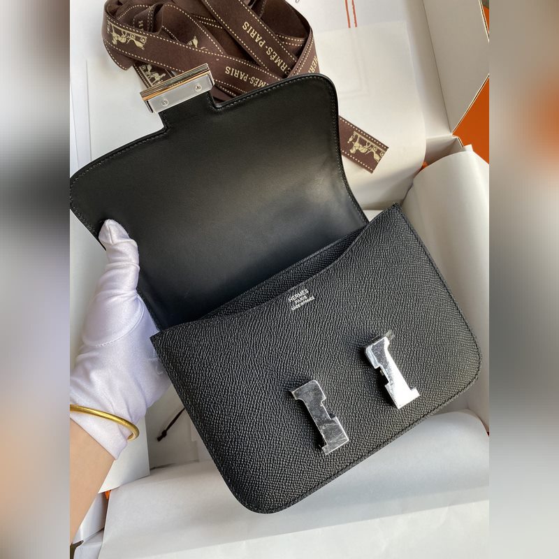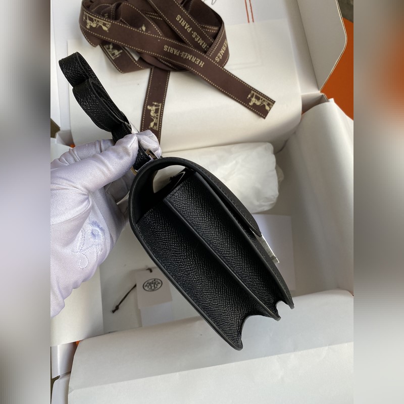Kang Kang Pieni 19 cm tuotu Epsom-nahkainen musta hopeasolki