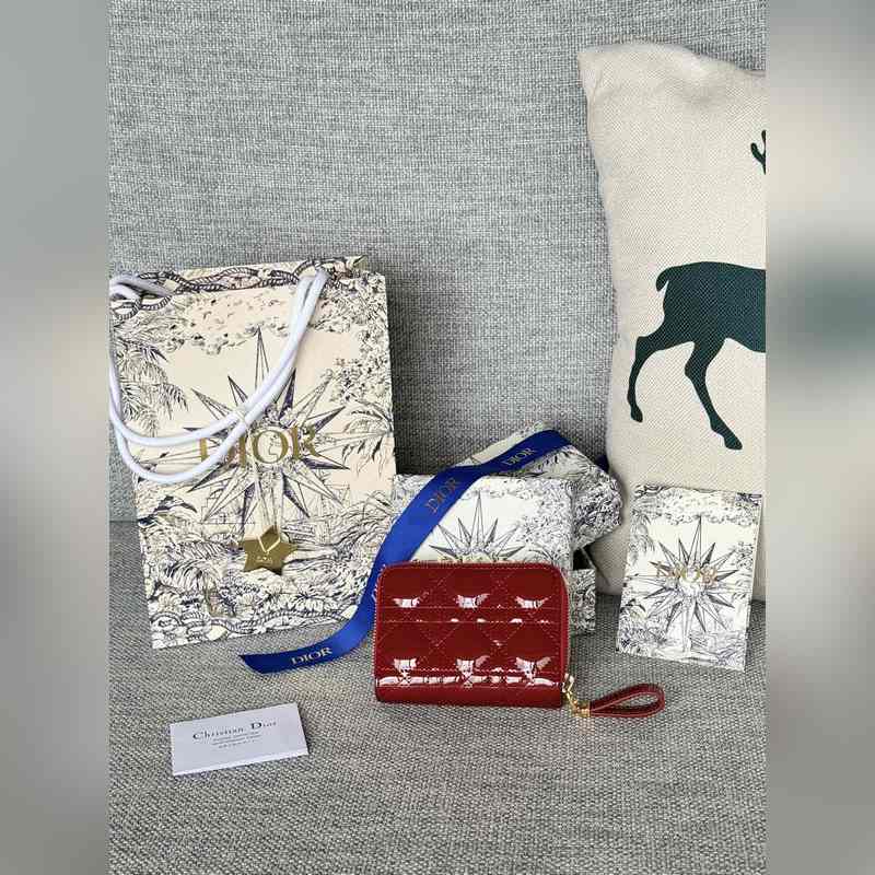 Tämä korttiteline on erittäin kätevä, vetoketjulla, sisään voi laittaa kolikoita ja kortteja, kapasiteetti riittää päivittäiseen käyttöön. Kiiltonahka sarja Dior (alkuperäinen CD-kortin pidike)