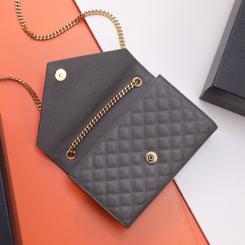 Eksklusiivinen real shot tausta premium alkuperäinen #Envelope# Musta kultasolki pieni rakeinen kohokuvioitu tikattu nahkainen kirjekuorilaukku klassikko on ikuinen, kaunis V-muotoinen timanttikaviaarikuvio, erittäin kulutusta kestävä, italialainen lehmännahka katseenvangitsijalla Y-logolla, tunnelmallinen ja muodikas, erittäin monipuolinen, pieni koko suurella kapasiteetilla, kyljellään voi päätellä, että siinä mahtuu paljon 526 tavaraa:62 21x13x6cm