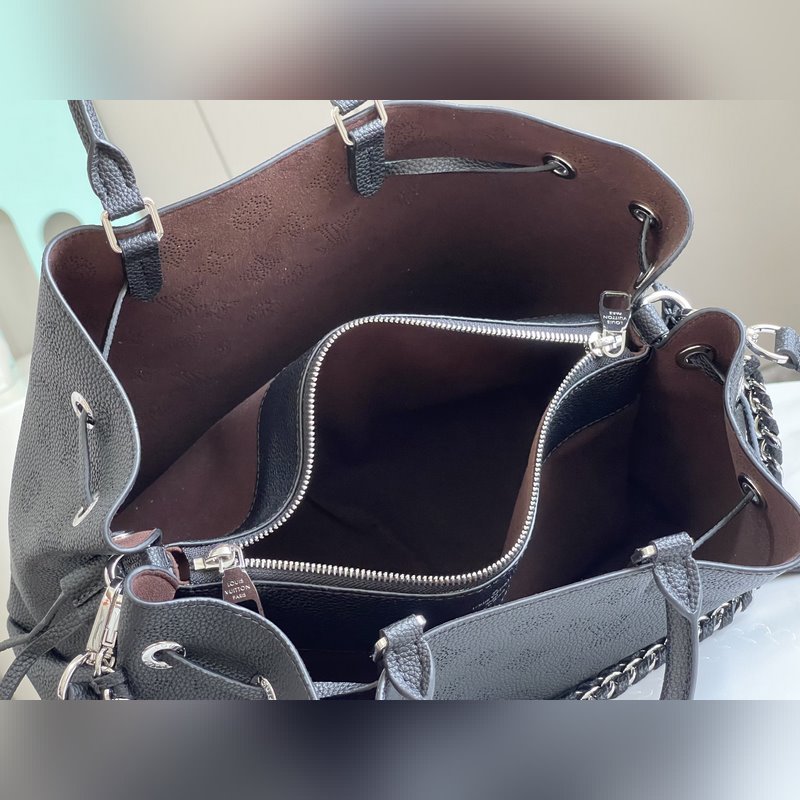 Huippuluokan alkuperäinen, 59200 uusi neljän värin palautus, pehmeästä rei’itetystä lehmännahasta valmistettu Bella Tote -käsilaukku, jossa on lempeä laskostus ja draperointi, koristeltu korumaisilla ketjuilla. Runsas kokoonpano, jossa on siisti sisäkerros, joka vastaa päivittäisiin matkustustarpeisiin, voi tuoda modernia charmia arkivaatteisiin. 32 x 23 x 13 cm (pituus x korkeus x leveys) rei’itetty lehmännahka