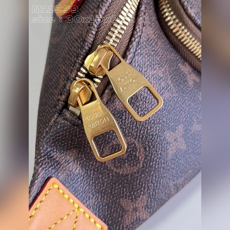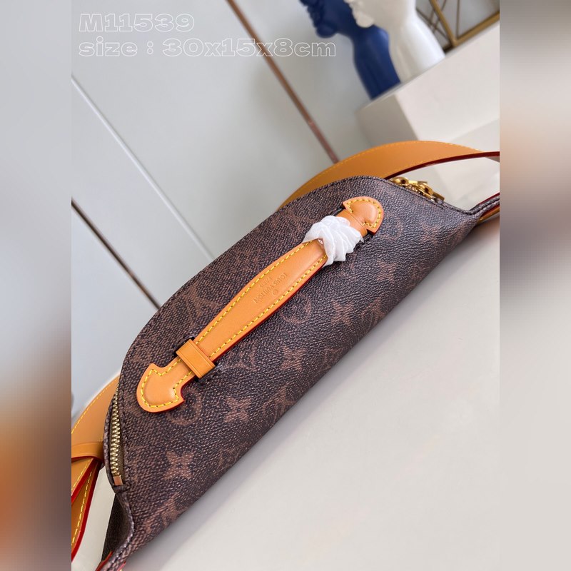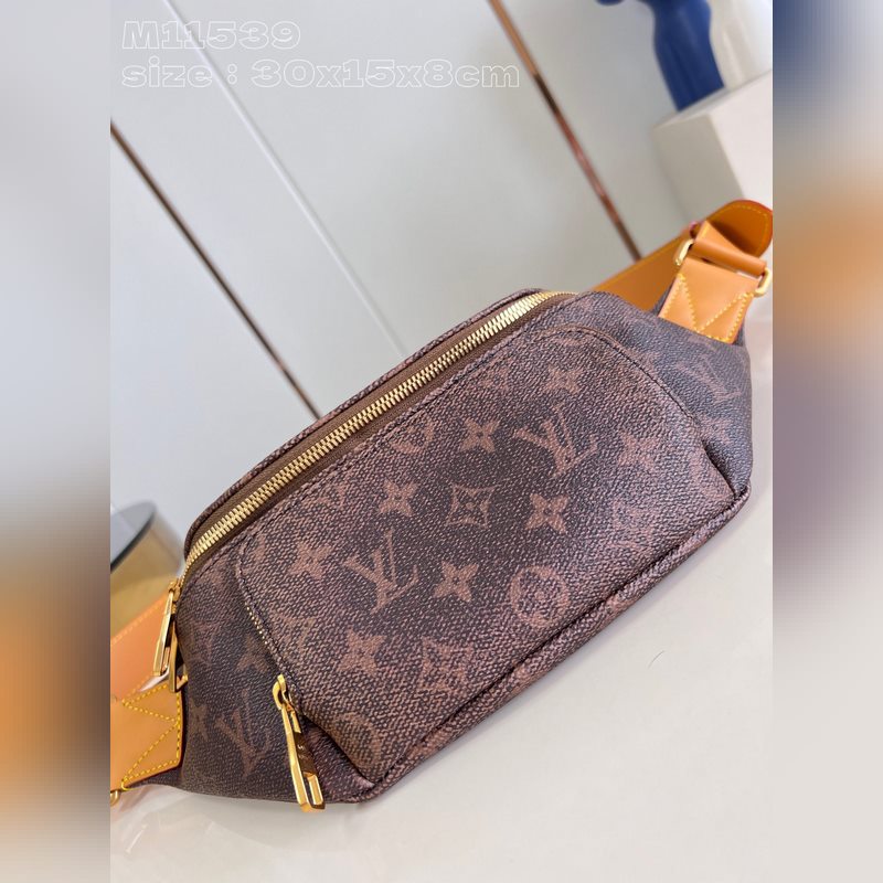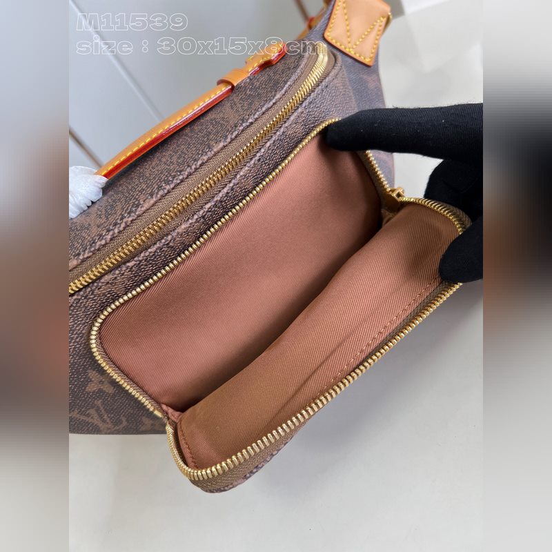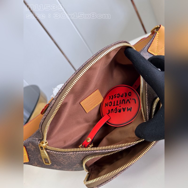 (Vaihteleva koodisiru) Huippualkuperäinen M11539 Tämä Rush-vyötärölaukku tarjoaa taitavasti retro-optisen vaikutelman Monogram Dust -kankaalla, ja se on varustettu kaksoisvetoketjulla helpon pääsyn päälokeroon. Hieno koristelu ilmentää Marque L.Vuitton Dé osée -logoa. 30 x 15 x 8 cm (pituus x korkeus x leveys)