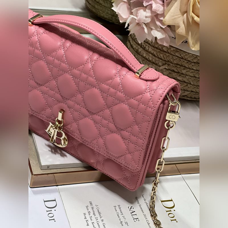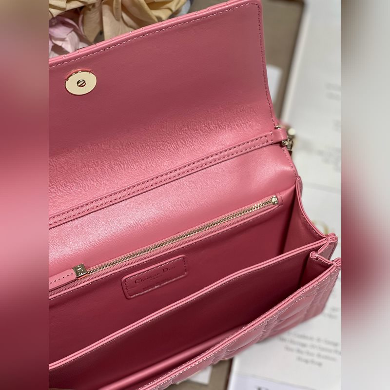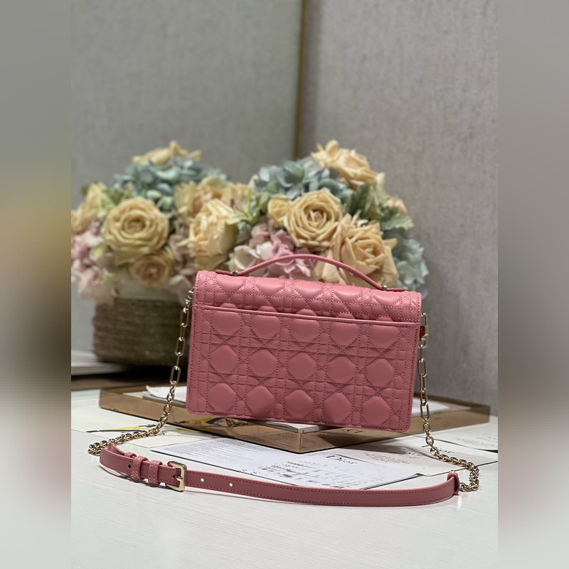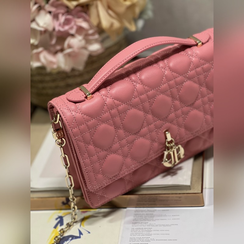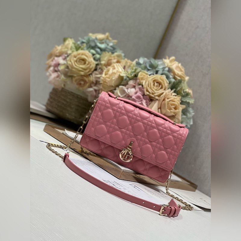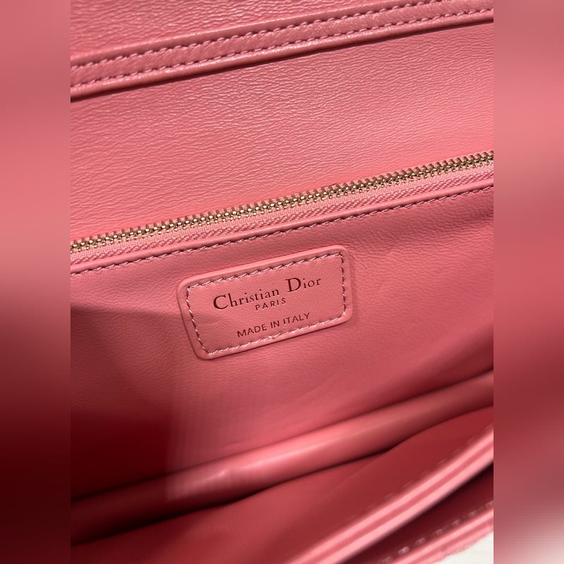 Tämä Miss Dior -käsilaukku on kevät/kesän 2024 malliston uutuus, tyylikäs ja käytännöllinen. Valmistettu vaaleanpunaisesta lampaannahasta, jossa on cannage-ompeleita, ja läppä on koristeltu D.I.O.R. viehätysvoimaa, ja kahdessa lokerossa ja vetoketjullisessa kytkimessä voi säilyttää erilaisia päivittäisiä tarpeita, joita voidaan käyttää päivittäisenä tai iltana. Klassinen yläkahvan muotoilu on yhdistetty irrotettavaan ketjun olkahihnaan, jossa on nahkahihna, jota voidaan kantaa käsissä, olkapäällä tai poikkivartalolla.