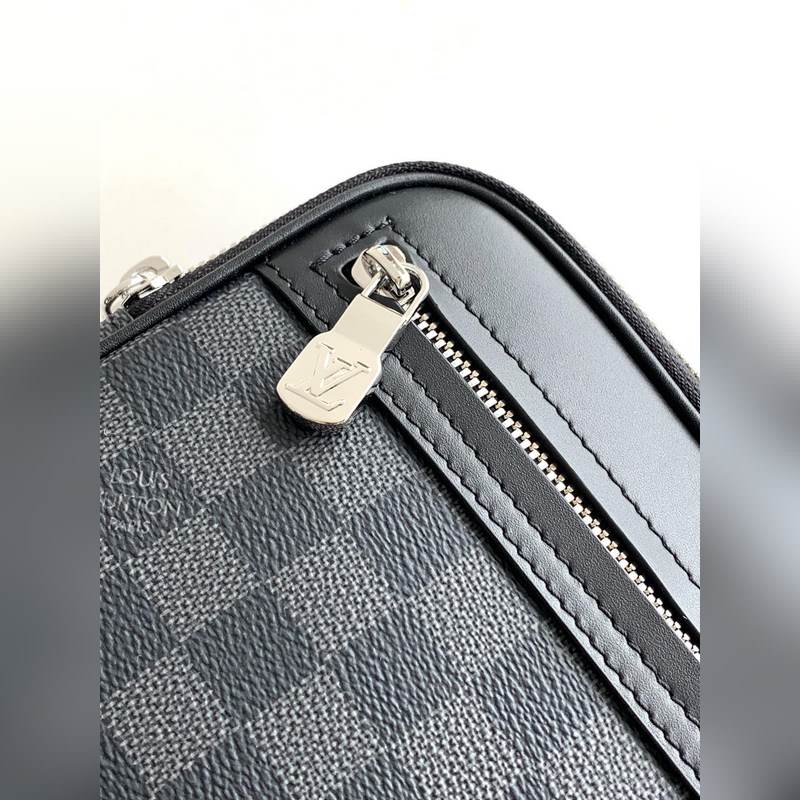 Top Alkuperäinen N50018 Tämä Scottin matkalaukku Damier Grahite -kankaasta antaa klassiseen muotoon uuden ilmeen, uudella tyylillä, jota on helppo kuljettaa ilman käsiä. Ketjukytkin tekee tästä monipuolisesta kappaleesta entistä käytännöllisemmän. Sen mukana tulee säädettävä kangasolkahihna ristikkäiskäyttöä varten, ja kultaiseen D-renkaaseen voi kiinnittää henkilökohtaisen amuletin tai onnenkorun. Mitat: 23 x 15 x 4 cm