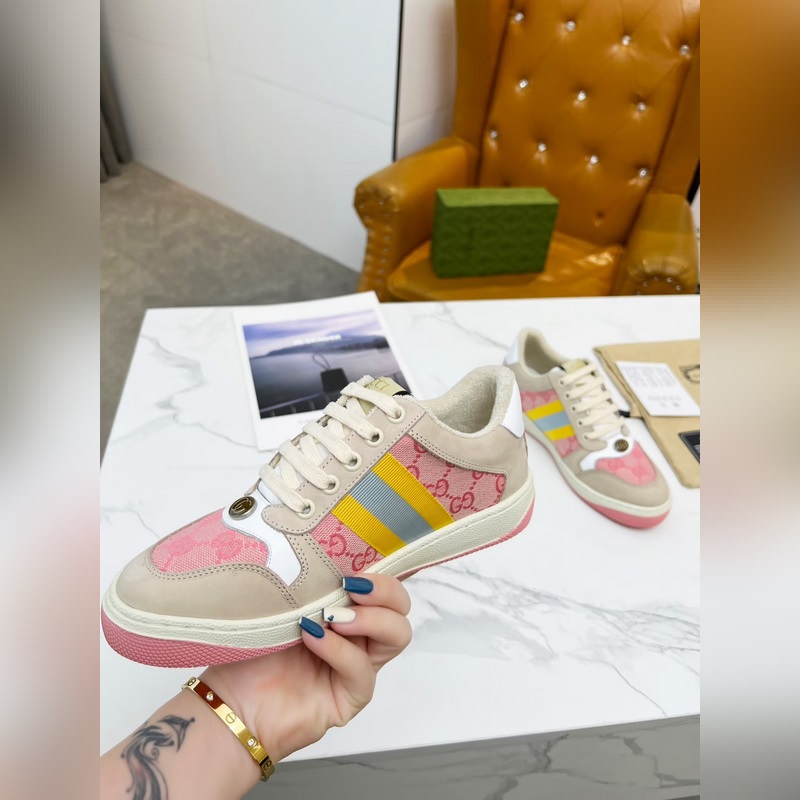 GUCCI:n uudet trendikkäät likaiset kengät ovat korkealaatuisia, retro-opistotyylisiä, kangassekoituksia, koristeellista raidallista nauhaa ja retro Gucci -logoa. Kaksivärinen kumipohja. Tasainen ja rento, ja helppo yhdistää. Super mukava päällä. Kangas: Ensimmäinen kerros lehmän kuorrutetta. Väri: pinkki. Jalkatyyny: lampaannahkaa. Koot: 34-40 (41 räätälöitävissä, ei palautusta tai vaihtoa) Pakkaus: kuitti, kortti, etikettikangaspussi.