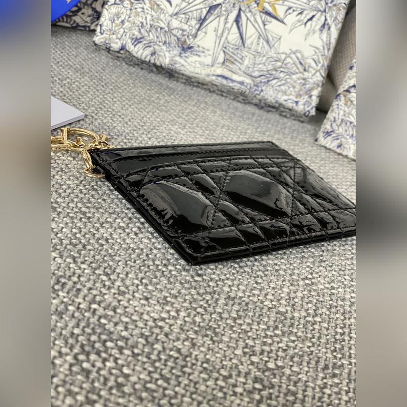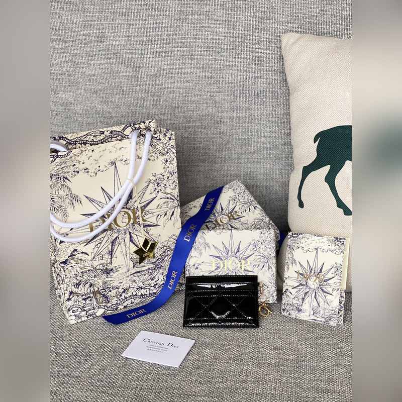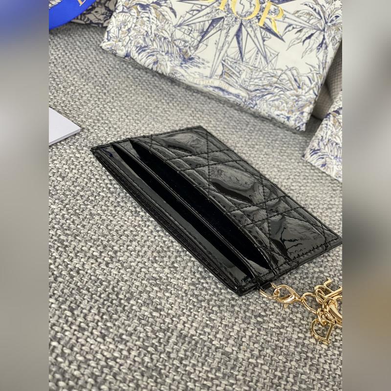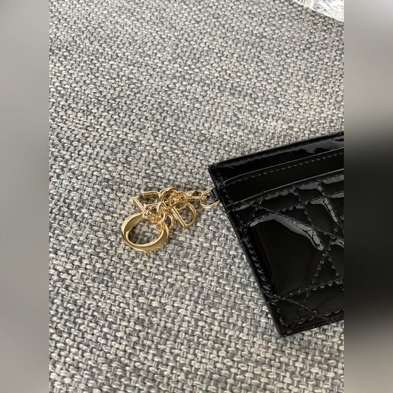 Tämä Lady Diorin viisiruudukkokorttiteline on tämän kauden uutuus, tyylikäs ja käytännöllinen. Muotoiltu pilvensinisellä kiiltonahalla, koristeltu rottinkikuvioompeleilla ja koristeltu irrotettavalla D.I.O.R. riipus. Tyylikäs ja hienostunut, viidellä korttipaikalla, sopii kaikkiin tilanteisiin, voidaan yhdistää muihin Lady Dioreihin