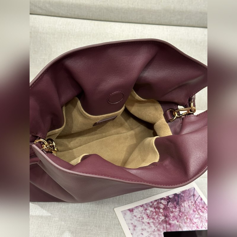 Valmistettu pehmeästä ja herkästä vasikannahasta, kiristetty kiristysnyörillä ja sidottu tunnusomaisella kierteisellä solmulla, olkapää, poikkivartalo tai kädessä pidettävä, irrotettava ja säädettävä olkahihna, magneettivuorattu olkahihna. 30-24,5-10,5