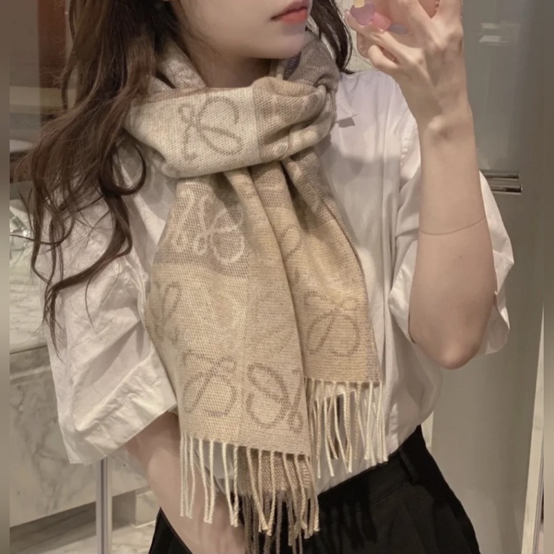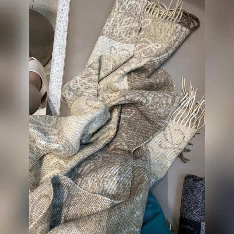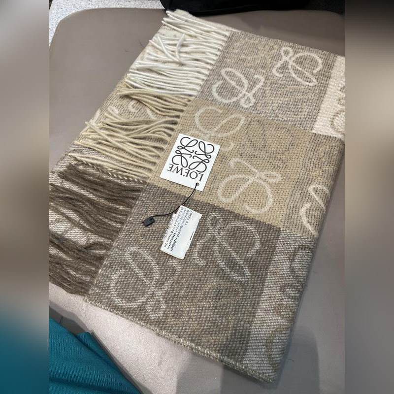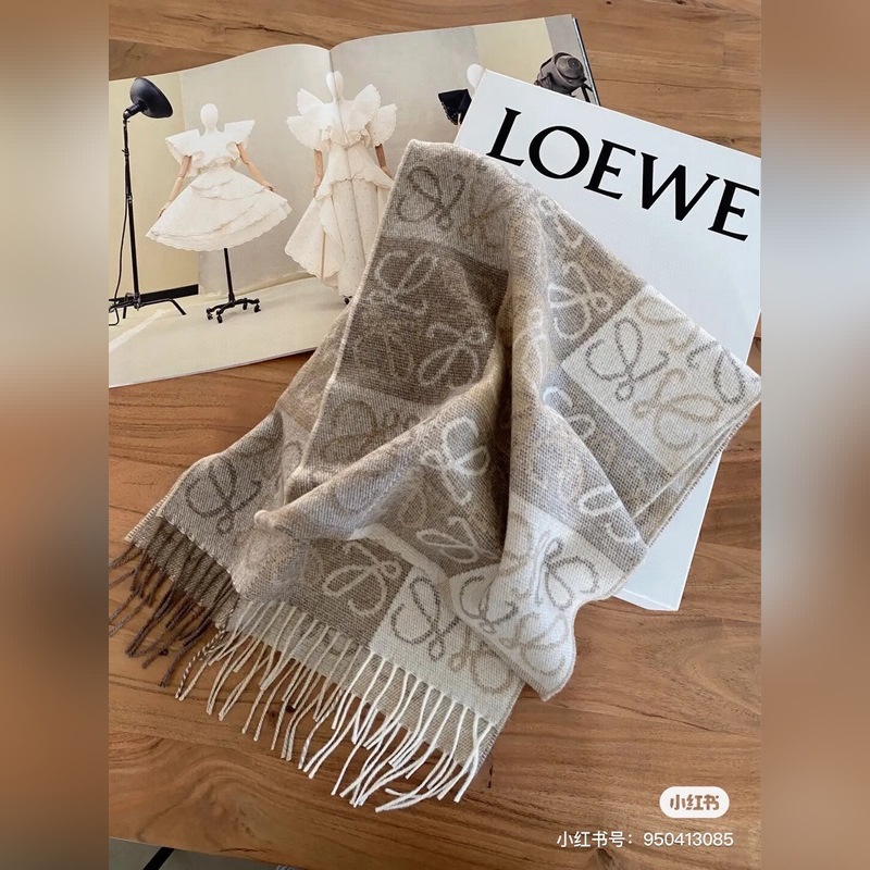 Espanjan parhaimpana luksusbrändinä Loewe vaalii perinteitä, käsityötaitoa ja innostusta ja huokuu ainutlaatuista espanjalaista aristokraattista tunnelmaa. Tämä huivi on mittatilaustyönä valmistettu ikkunahuivi Barcelonan tiskille. Kokonaiskoostumus on heidän brändinsä klassisin LOGO-tyylinen muotoilu.