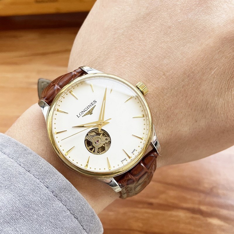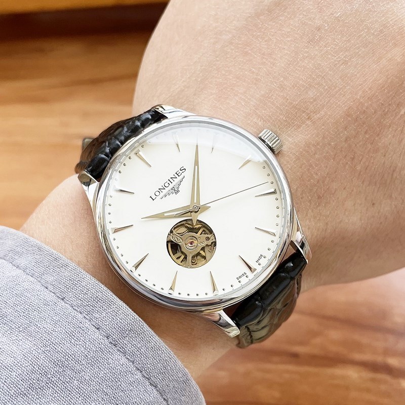 Miesten Longines kello, klassinen kolmen käden ontto muotoilu
