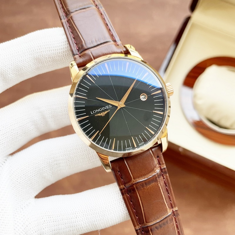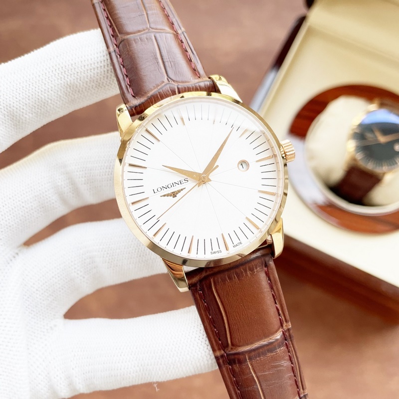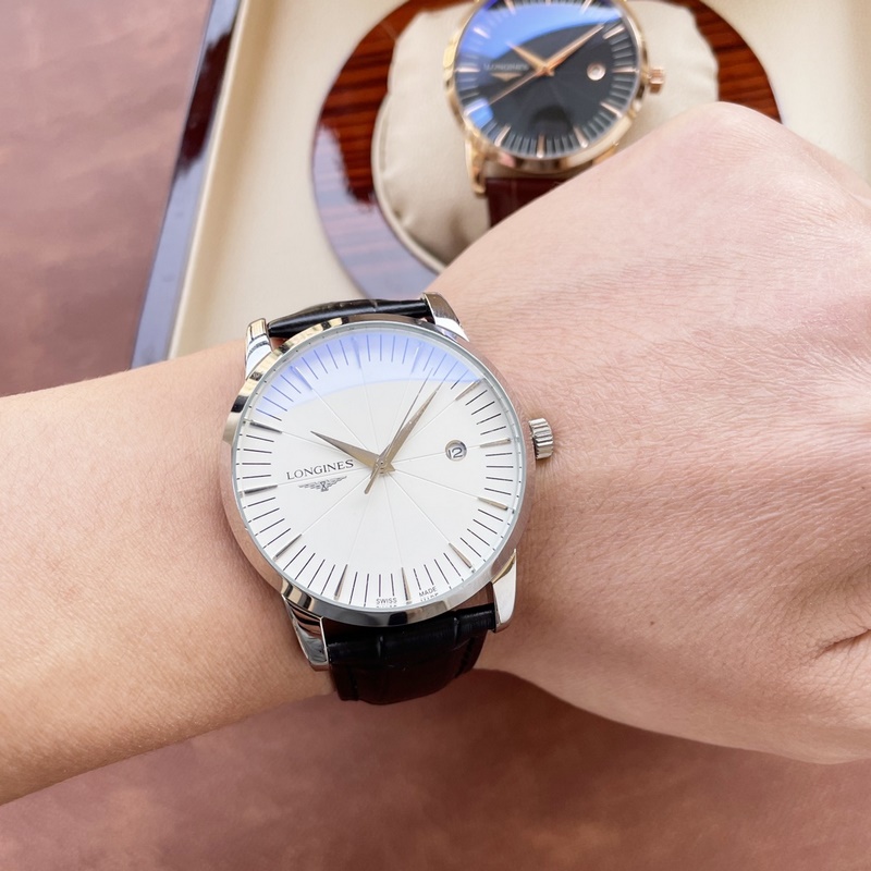 Longines miesten kello, klassinen kolmen käden muotoilu, jalo ja elegantti, herrasmies, erinomainen laatu, kuumaa myyntiä kaupungissa. Se ottaa käyttöön täysin automaattisen mekaanisen liikkeen, top 316 ruostumattomasta teräksestä valmistettu kotelo, maahantuotu vasikannahkahihna, mineraali superpeili, koko 40 * 13