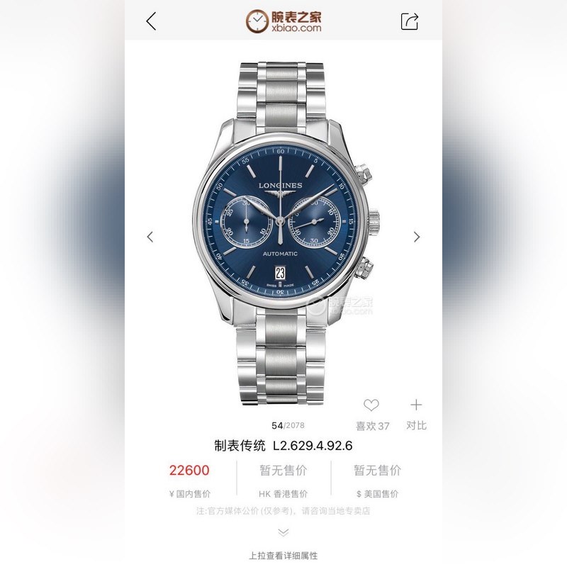 Uusi sininen klassikko, monitoiminen kronografikoneisto 7750, klassinen master-kronografi-tyyli, 9-numeroinen pieni kellotaulu, klassiset osoittimet, safiirikristallipeili