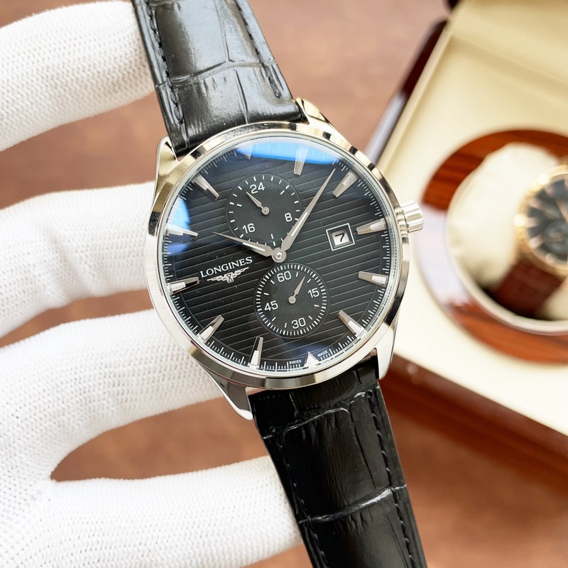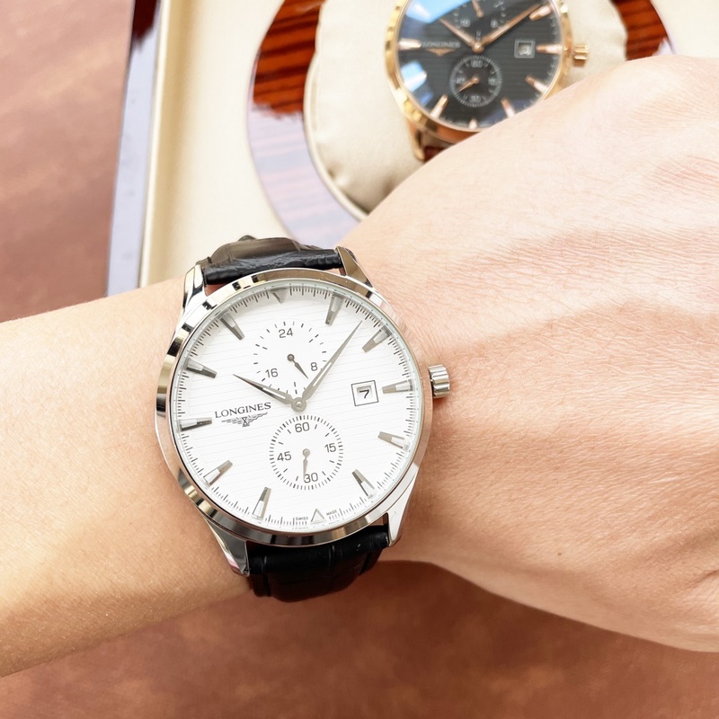 Miesten Longines kello, neljän käden erottelu, hieno ammattitaito, ainutlaatuinen kekseliäisyys, jalo ja elegantti, herrasmiestyyli. Se ottaa käyttöön täysin automaattisen mekaanisen liikkeen, top 316 ruostumattomasta teräksestä valmistettu kotelo, maahantuotu vasikkanahkahihna, mineraalinen superpeili, koko 40-13