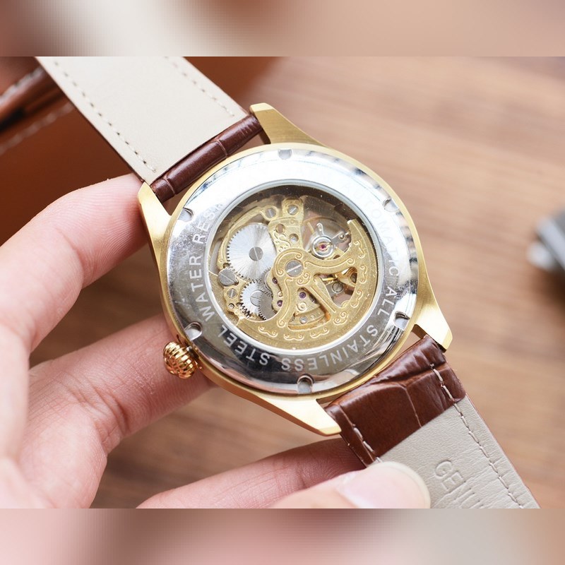 ranneke: aitoa nahkaa oleva ranneke Liikunta: Huippuluokan täysin automaattinen mekaaninen liike Peili: Mineraalivahvistettu lasi (teräväpiirto) Tyylikäs maku, laaja tunnelma, nerokas muotoilu, ranteen aarre Koko: halkaisija 41 mm, paksuus 12 mm Hot sale