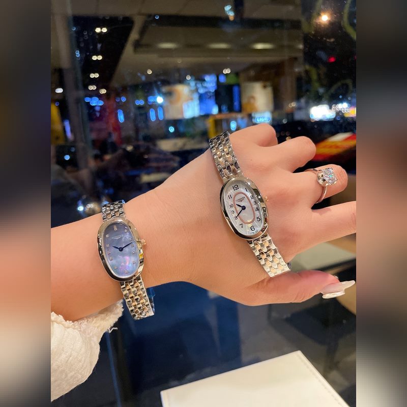 Longines – Uusi Symphonette Waltz -sarjan kello, jossa on tuotu kvartsiliike, helmiäinen kellotaulu timanteilla tai roomalaisilla numeroilla, mitat 23*32*9mm.