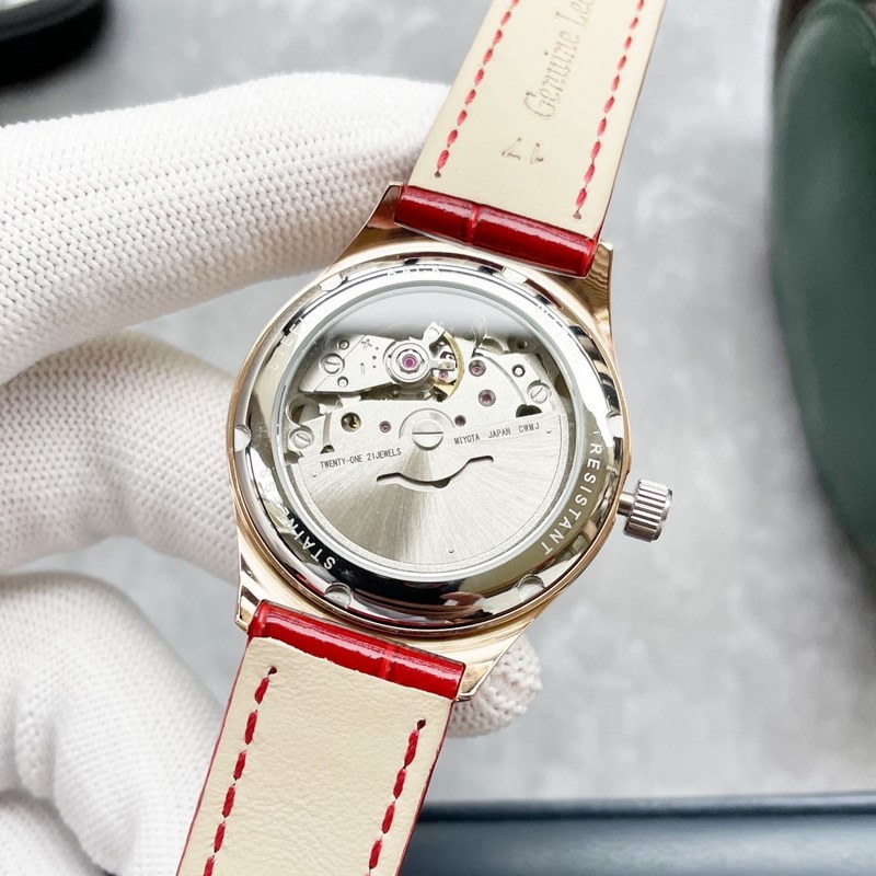 Muodikas mekaaninen naisten kellokotelo on ainutlaatuisen luova, kevyt ja mukava. Rannekoru koostuu ergonomisesti suunnitellusta kaarevasta keraamisesta teräsketjusta, joka sopii täydellisesti naisen hoikkaan ranteeseen. Se on varustettu Japanista tuodulla 8215 mekaanisella liikkeellä ja safiirilasilla. Koko 32mm*11mm