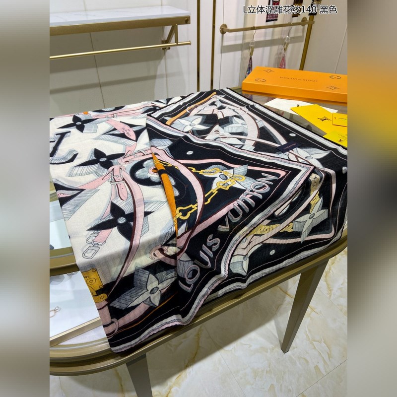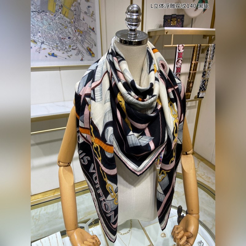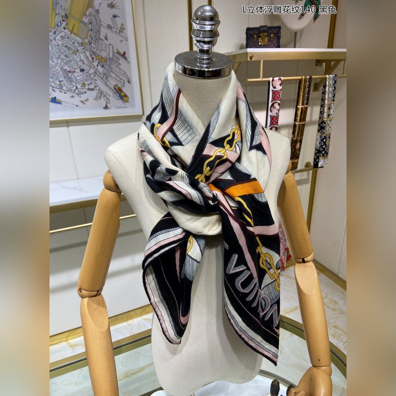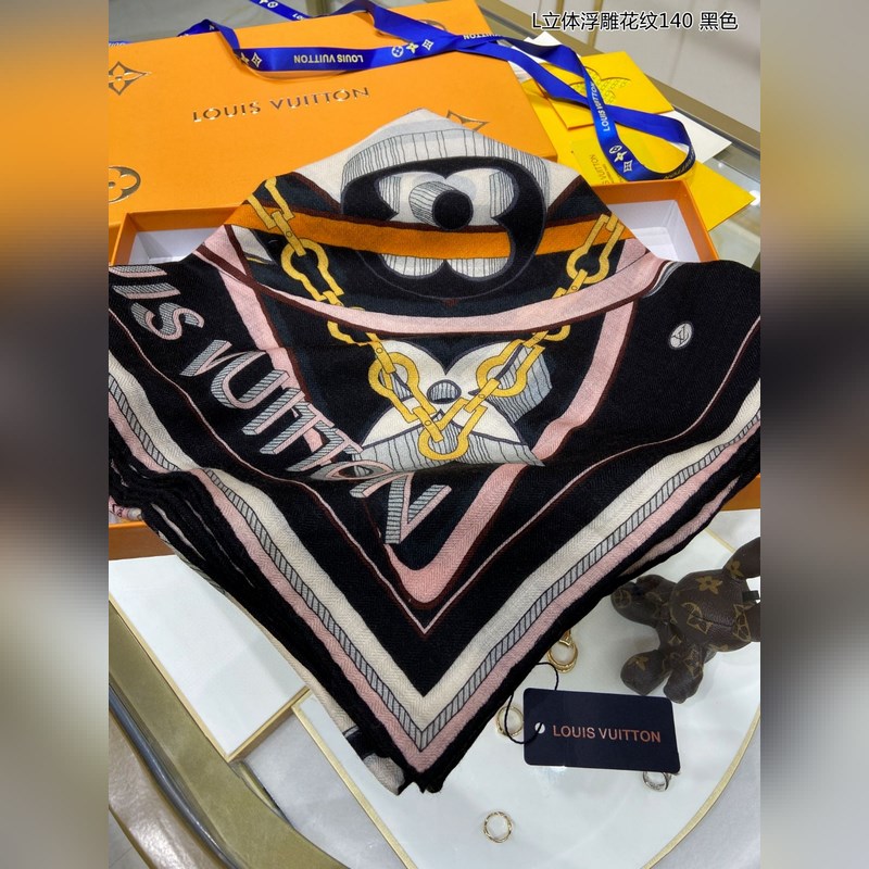 Tuote on täällä. Pidän kovasti L-kolmiulotteisesta kohokuvioidusta kuviosta 140. Monogrammi-kuvio taustalla, Louis Vuittonin logolla painetut designelementit: nahkahihna, metalliketju ja riippulukko on suunniteltu täydellisesti. Suosittelen vahvasti, että et mene tiskille ostamaan niitä, jos olet hidas. Ne ovat täysin samat. 100 % silkkikashmiria. Hinta on todella hyvä. Tämä koko ei ole liian suuri tai liian pieni, erityisen helppo yhdistää. Laatu on super hyvä. Ymmärrät huippulaadun, kun saat sen. Huippuyksityiskohdat ovat mitä näet, sen saat. Se on raskaan sarjan tarjonta. VI:n asiakkaiden on ostettava se. Suositus 140*140cm
