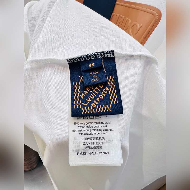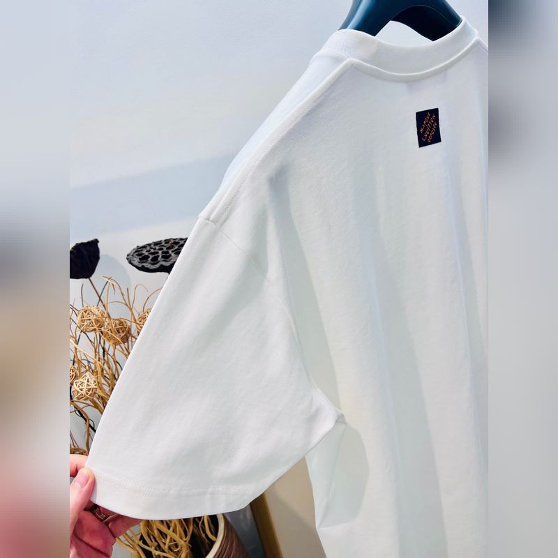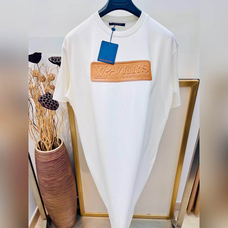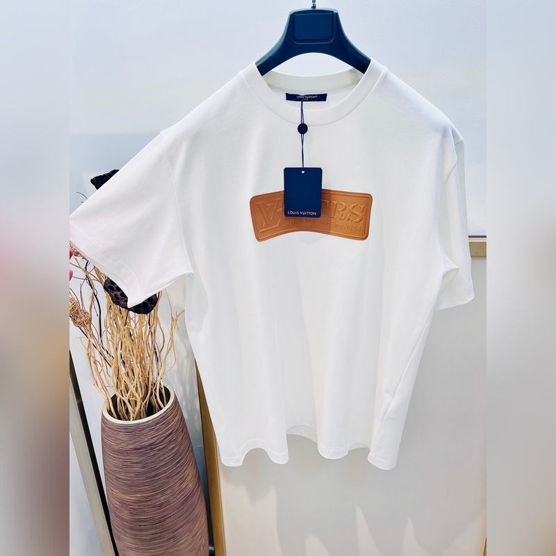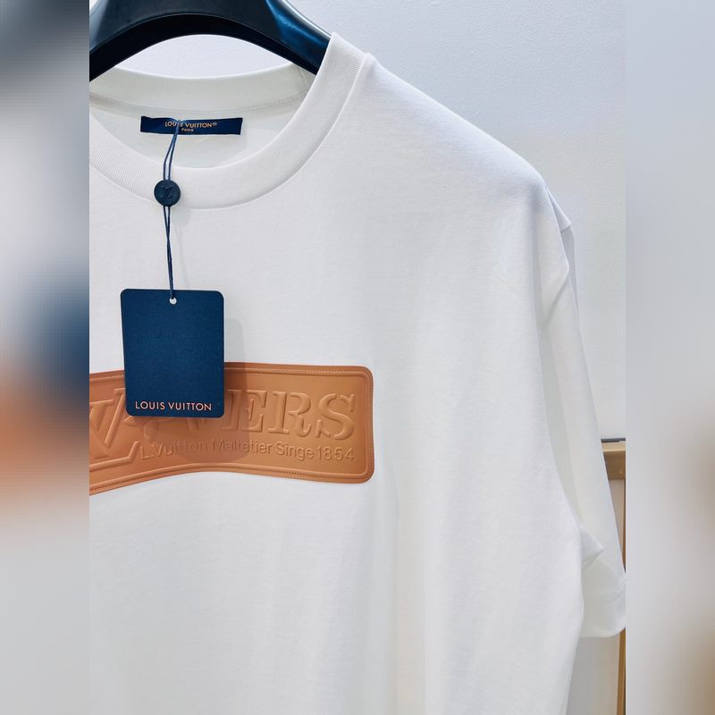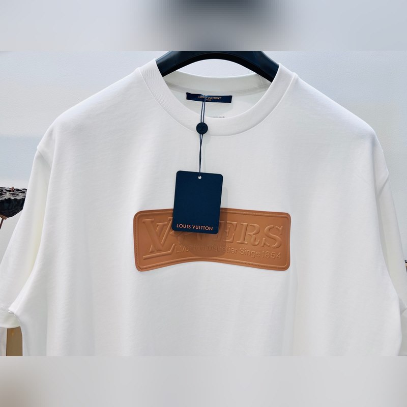 1V Louis 2025FW alkukeväästä raskaan puuvillan kolmiulotteinen kirjainnahkamerkki puolihihainen T-paita.
