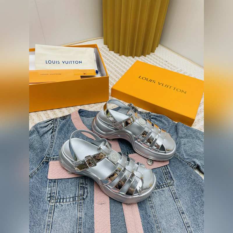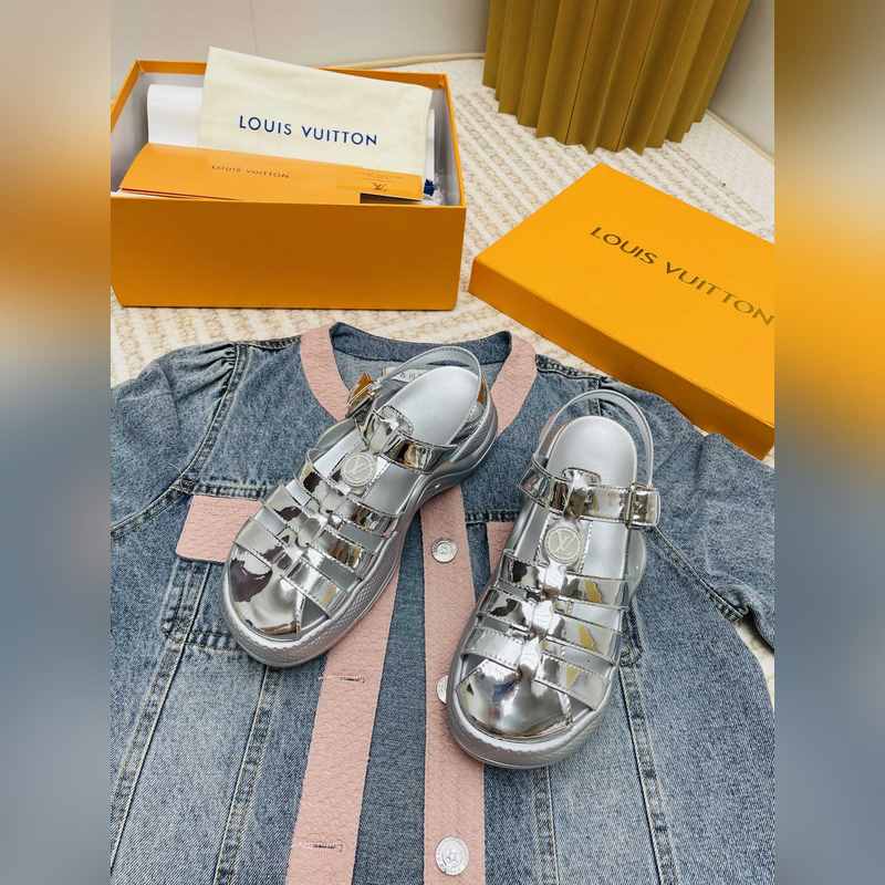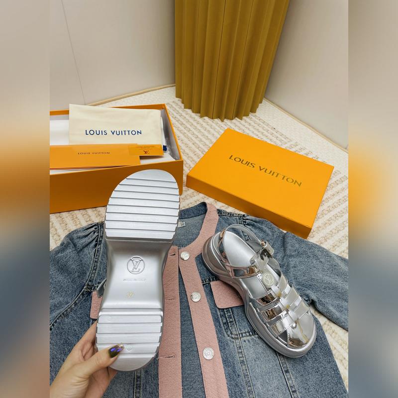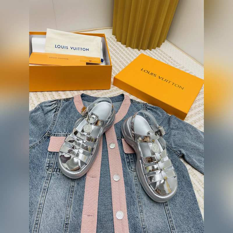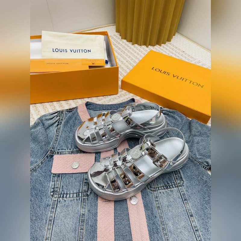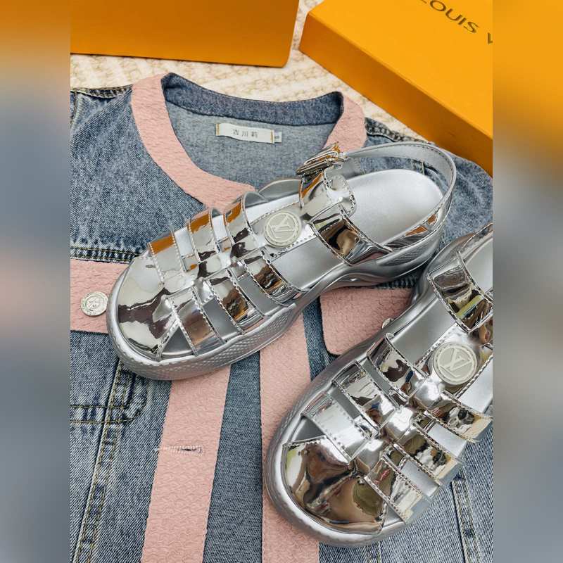 LV:n uusien sandaalien pyöreä kärki on söpö ja ikääntyvä. Siinä on 4 väriä ja 4 tyyliä. Vihreä on leikkisä, musta on monipuolinen, valkoinen on virkistävää ja hopea viileää