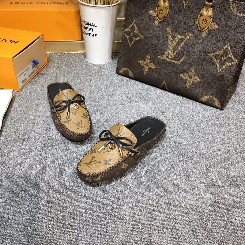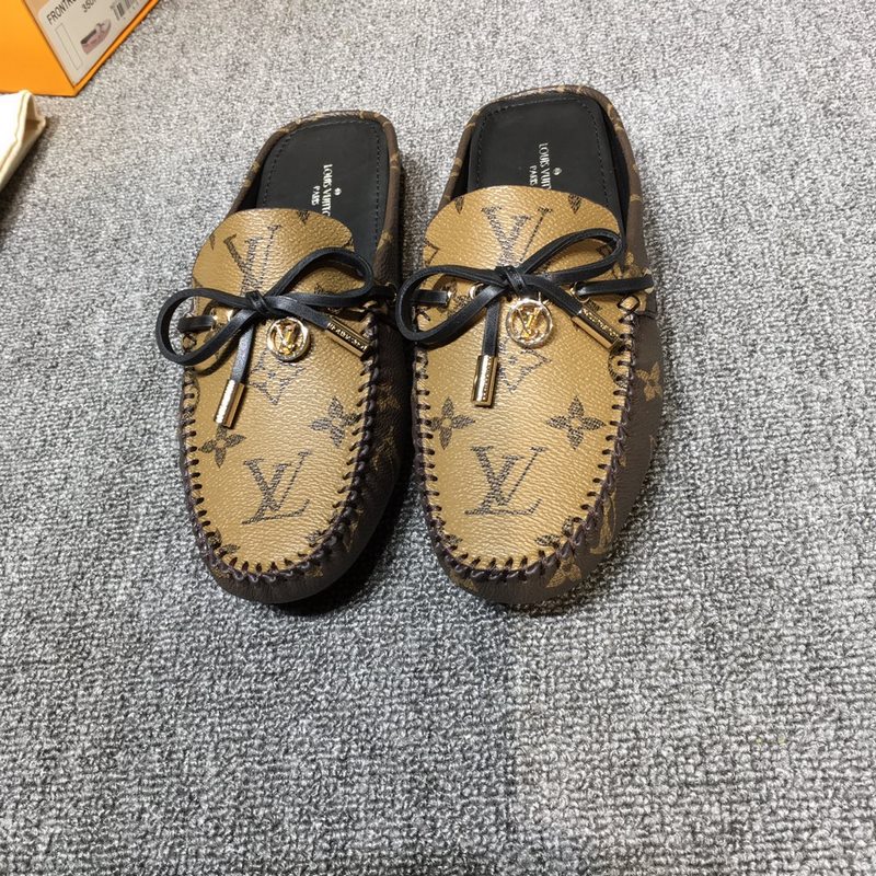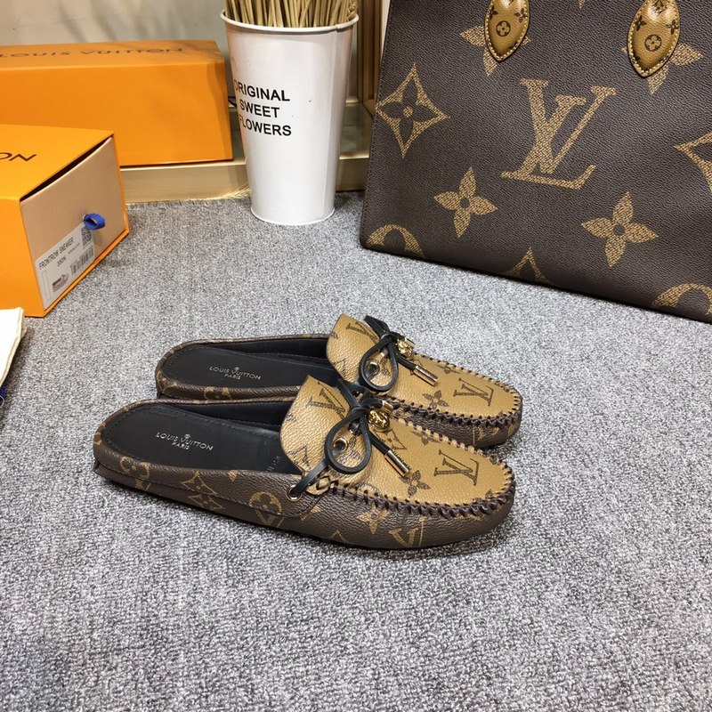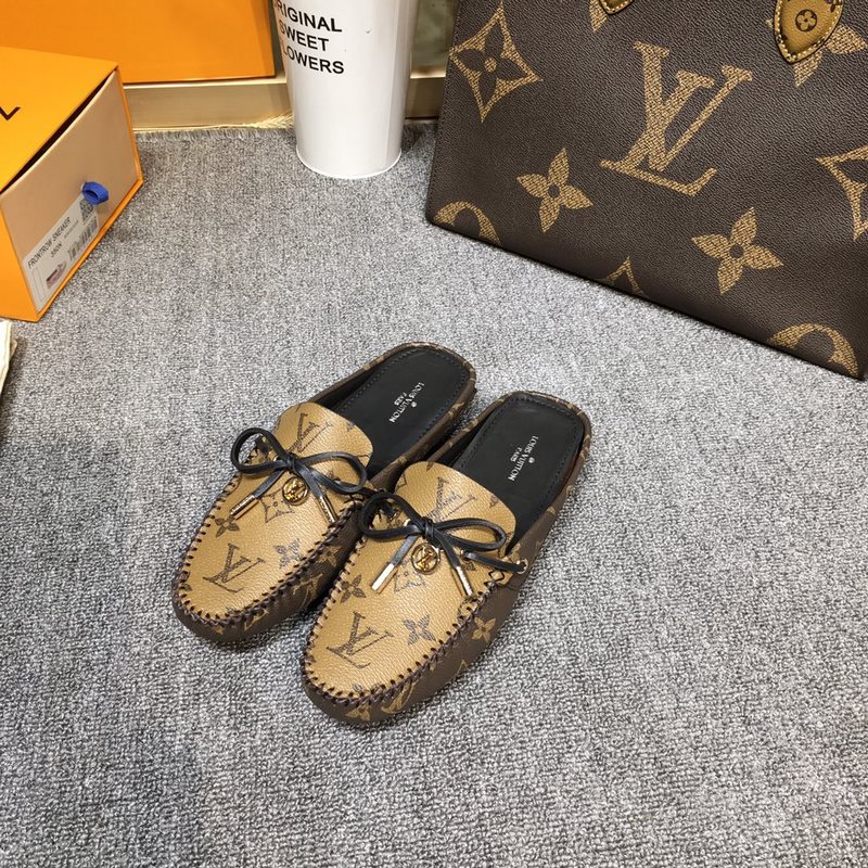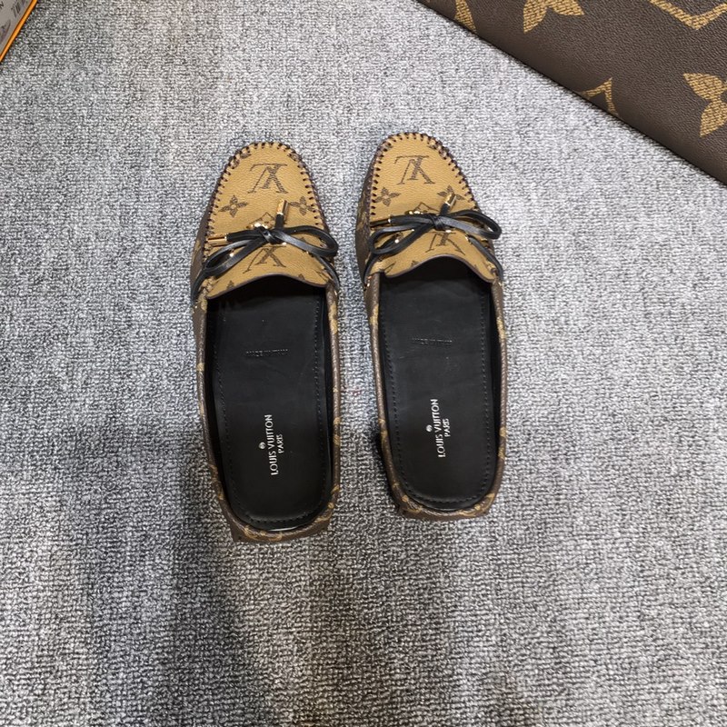 Louis Vuitton GLORIA litteät loaferit, valmistettu klassisesta Monogram-kankaasta, kevyt ja mukava mokasiinirakenne, jossa käsin ommeltu päällinen, koristeltu LV Cicle -logolla ja kaiverretut kengännauhanpäät. Koristeltu jousi LV-logolla varustetulla ympyräsoljella, ylellinen muotoilu, täydellinen tulkinta merkin luksustyylistä, vesivärjätty lehmännahkainen vuori, alkuperäinen A-luokan kumipohja, koko: 35-42