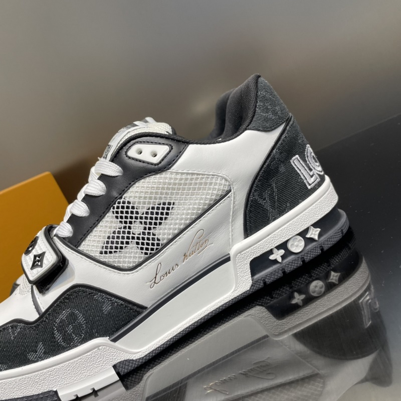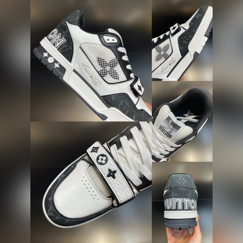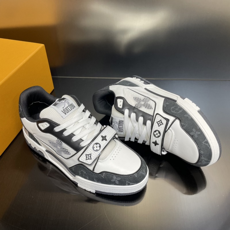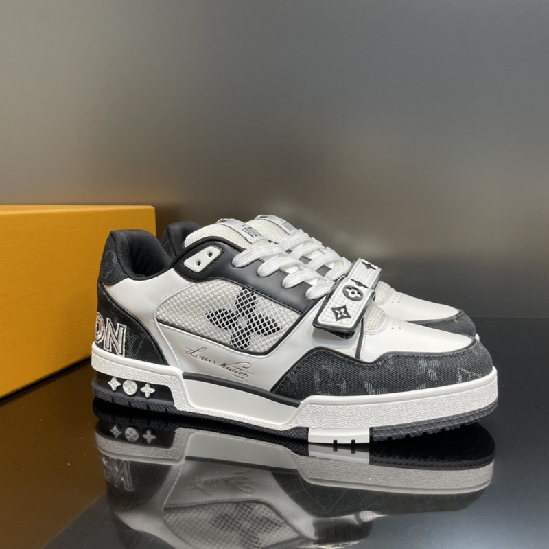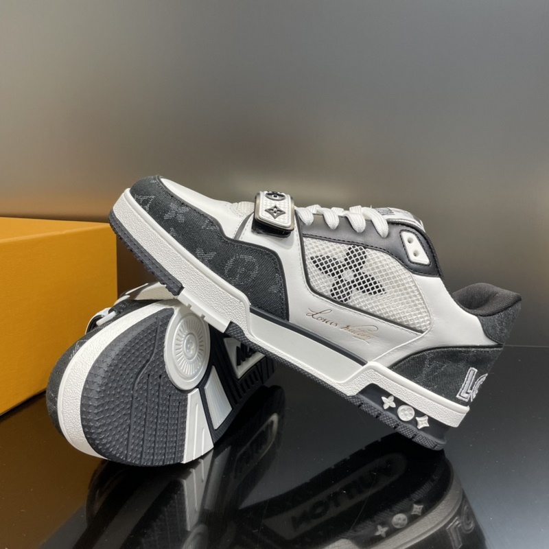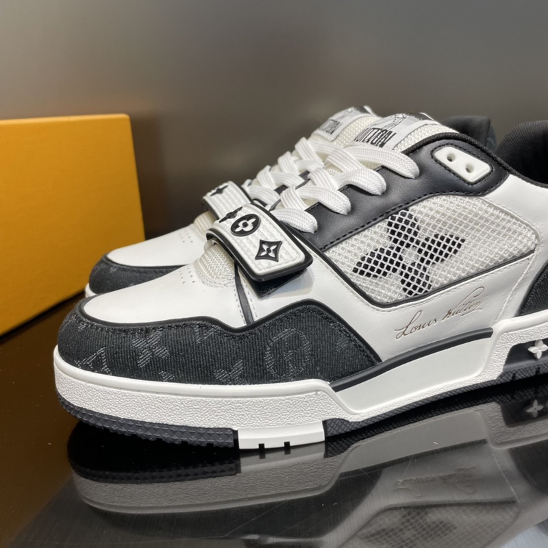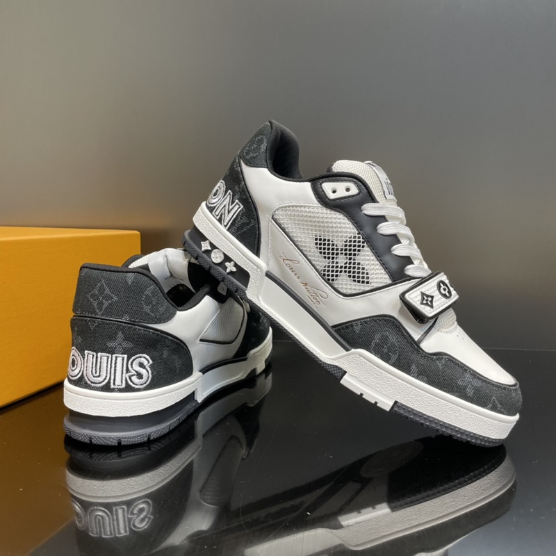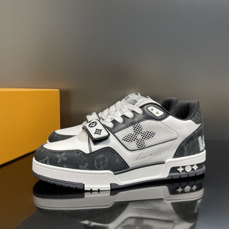 LOUIS VUITTON LV huippuversio pariskunnan L. Home 2023 uusi väri, Velcro Trainer tennarit, tämä Trainer-lenkkari on valmistettu tuontinahasta. Kengän kylkeen on yhdistetty farkku/verkko-design, muotoilu on yksinkertainen, inspiroitunut miesten taiteen johtaja Virgil Ablohin ihailemista retro-koripallolenkkareista, ja sivua koristavat hänen käsinkirjoitetut Louis Vuitton -englanninkieliset sanat. Teknologinen kumipohja on varustettu innovatiivisella geelipohjallisella, joka takaa erinomaisen mukavuuden. Ulkopohja on koristeltu Monogram Flowers -kuviolla.