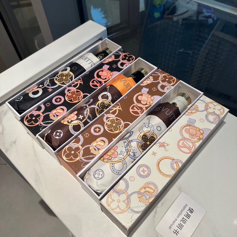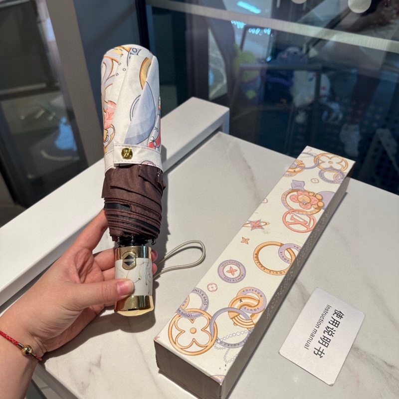 LOUIS VUITTON LV uusi kolminkertainen automaattinen taitettava sateenvarjo uudella pinnoitustekniikalla ja tummalla sateenvarjon pinnalla on yllättävä varjostusvaikutelma 3 värissä