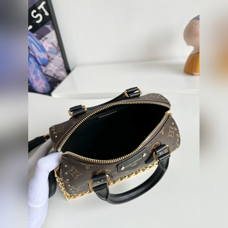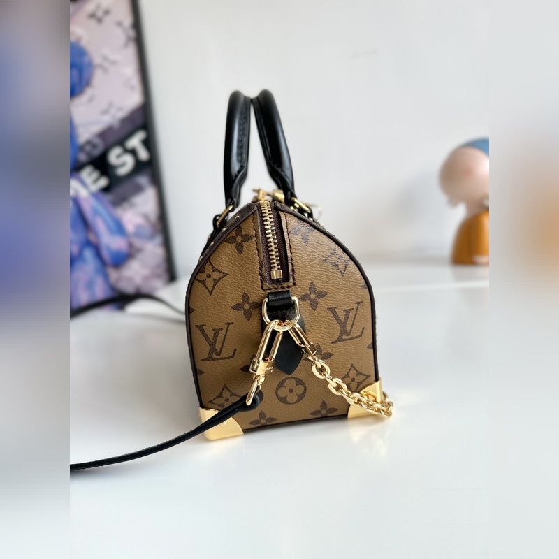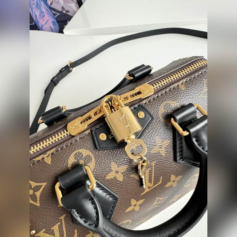『Dynaaminen siru tiskipakkauksella』 Ainutlaatuinen todellinen otos merentakaisesta alkuperäisestä M13146 Speedy Trunk -käsilaukusta, joka rekonstruoi klassisen muotoilun rohkeilla ideoilla ja tekee silmiinpistävän ilmeen Louis Vuitton 2025 Cruise -näytöksessä alkukeväästä. Monogrammikangas Monogram Reverse -verhoilulla näyttää Nicolas Ghesquièren ikoniset siveltimen vedot, ja häikäisevät metalliosat osoittavat kunnioitusta brändin pitkäaikaiselle laatikoiden valmistusperinteelle. Olkahihna ja ketju ovat molemmat irrotettavia, sopivat poikittais-, olka- tai kädessä pidettäväksi. Koko: 20,5×13,5×11 cm
