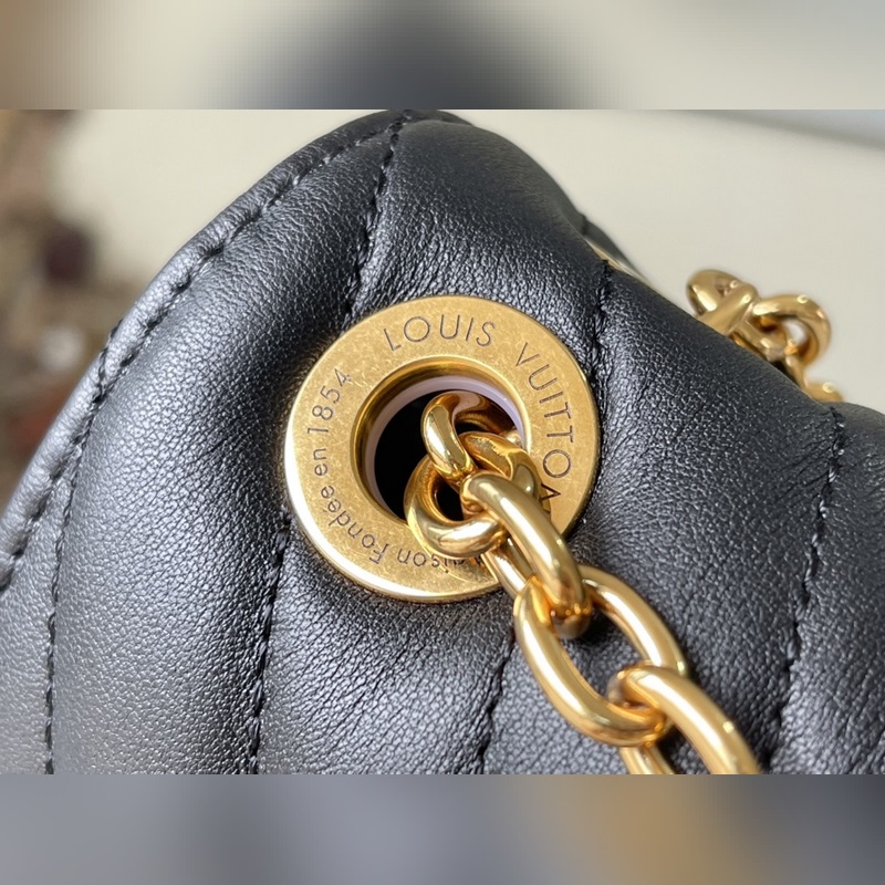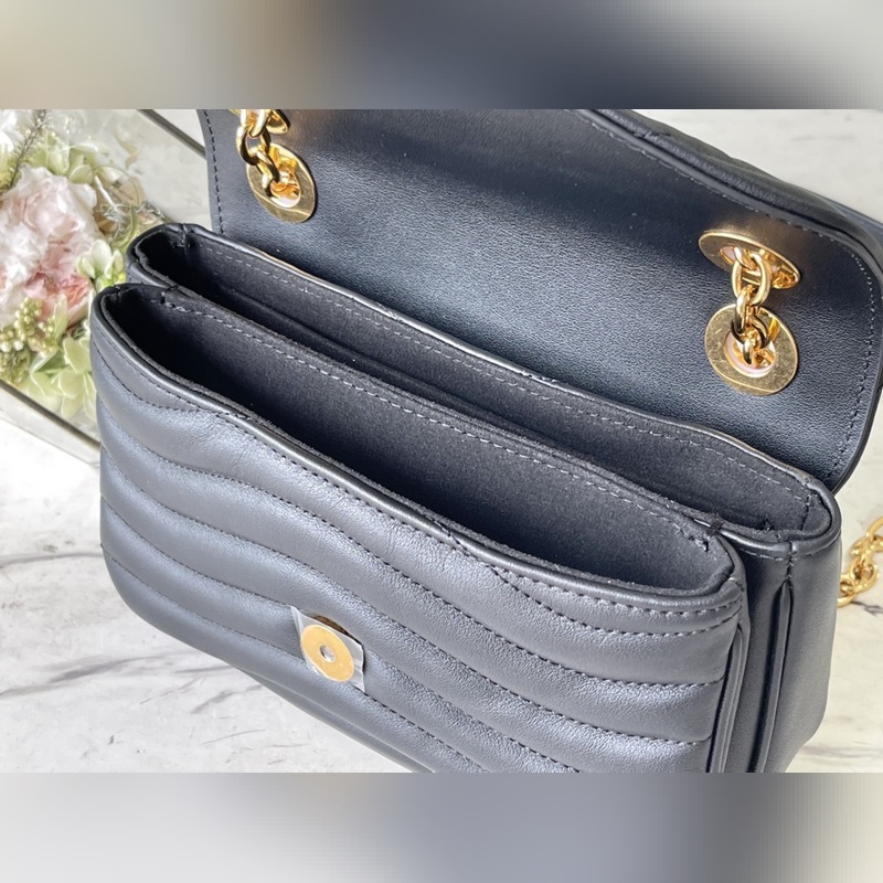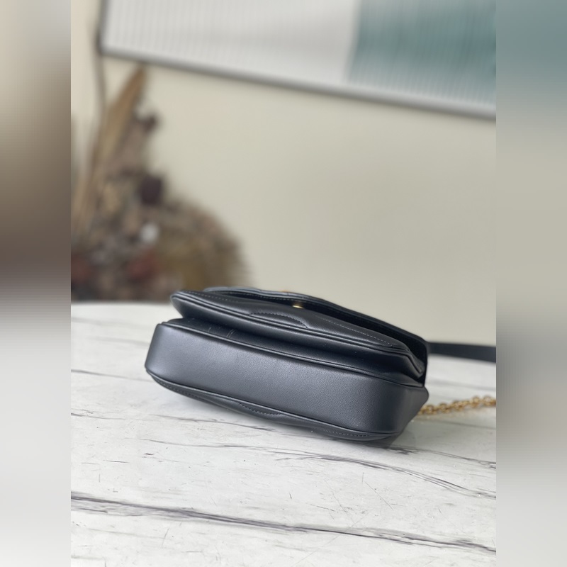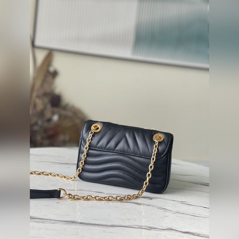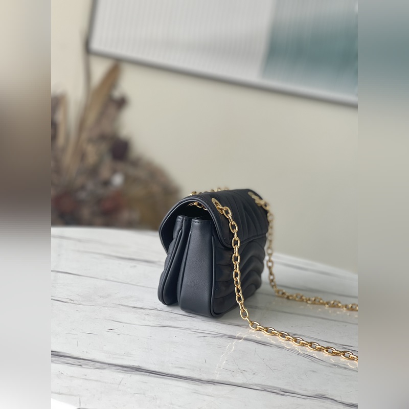 Wave-ketjulaukku ja käsilaukku yhdessä. Pehmustettu tikattu lehmännahka luo aaltomuodon, ja liukuva ketjun olkahihna mahdollistaa pitkän tai lyhyen olkapään ja poikkivartalon vaihtoehdot. Mitat: 21 x 12 x 9 cm
