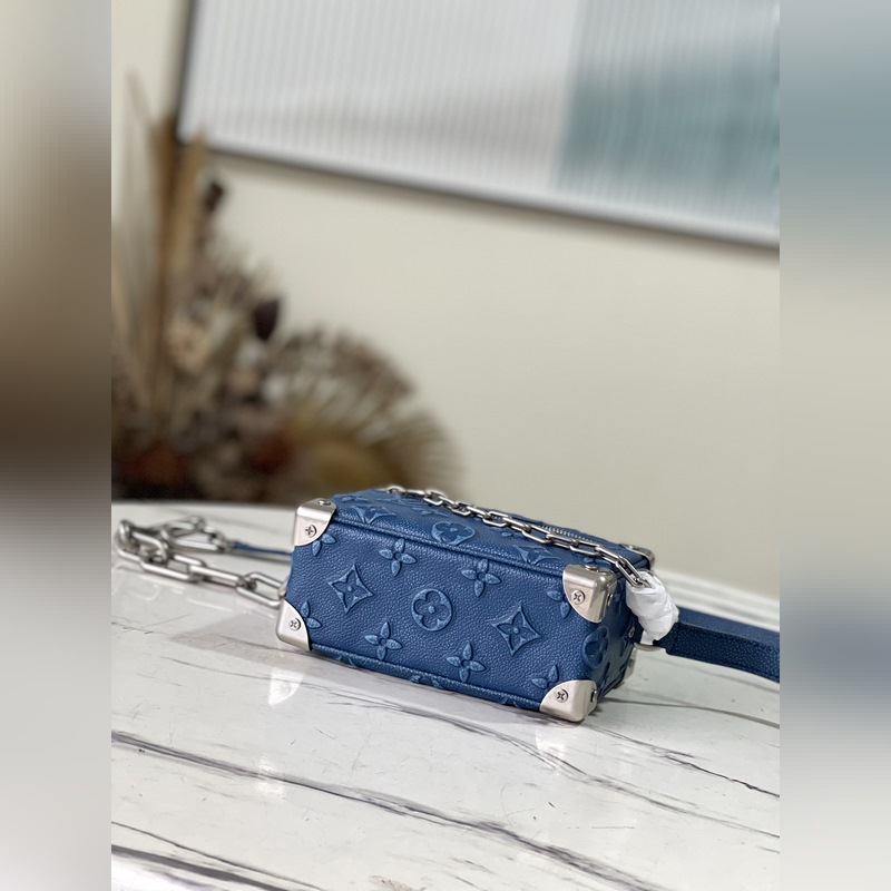 Tyylinumero: M21368 Sininen Tässä käsilaukussa käytetään lehmännahkaa jäljittelemään denim-tekstuuria, ja käyttää kohokuviointi- ja painotekniikoita, jotka antavat Monogrammi-kuviolle kirjavan haalistumisen. Ketju ja vahvistetut kulmat luovat metallista kiiltoa, ja kompakti kokoonpano vastaa päivittäisiin tarpeisiin. Mitat: 18,5 × 13 × 8 cm