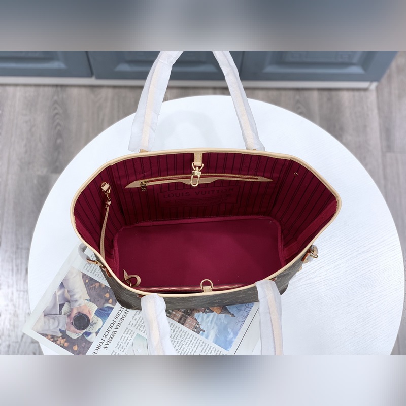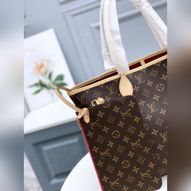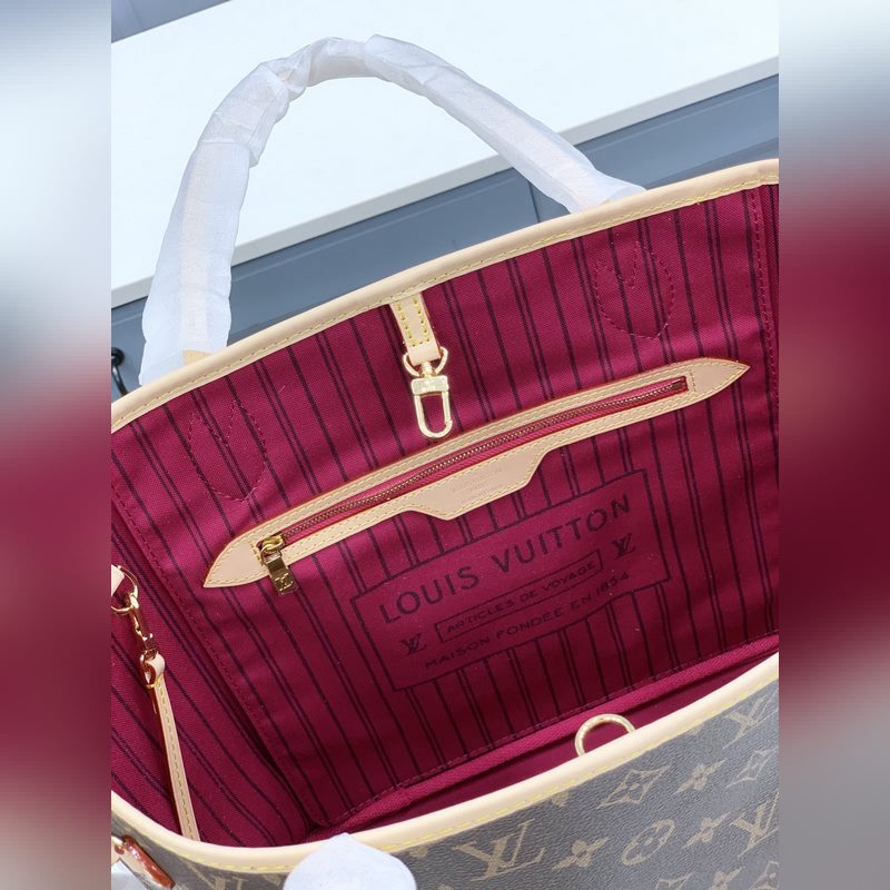 LV-tyylinumero: M41178 Louis Vuittonin uusi tulkinta Neverfull-klassikkokäsilaukusta vanhanaikaisella luumukukkavuorella