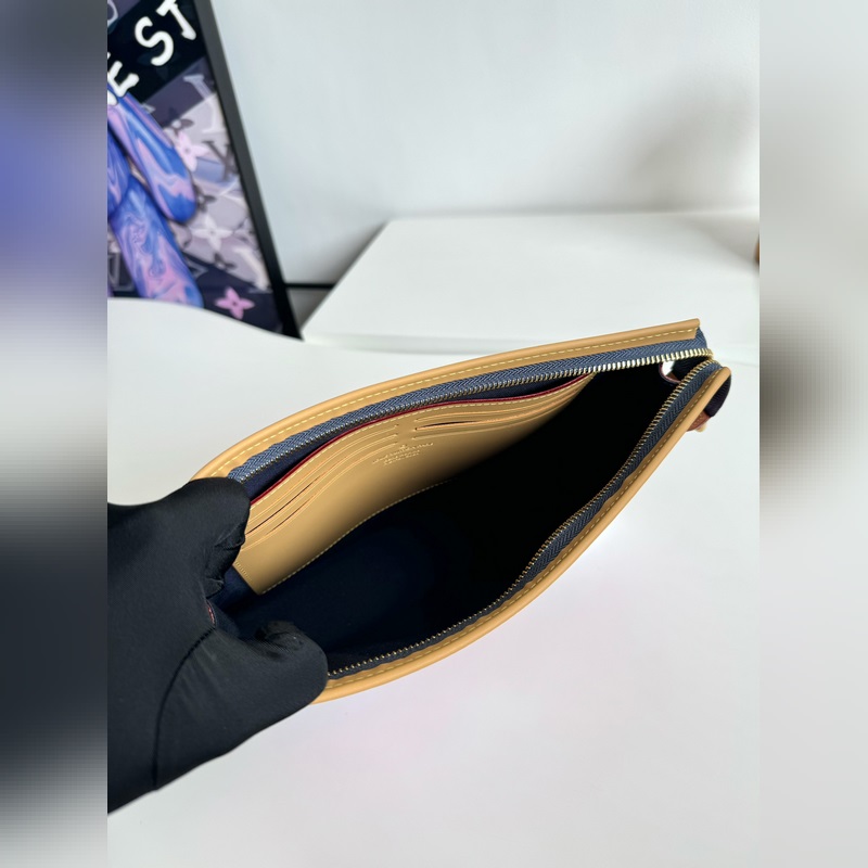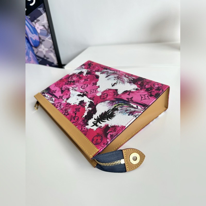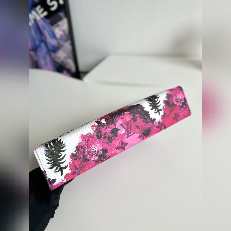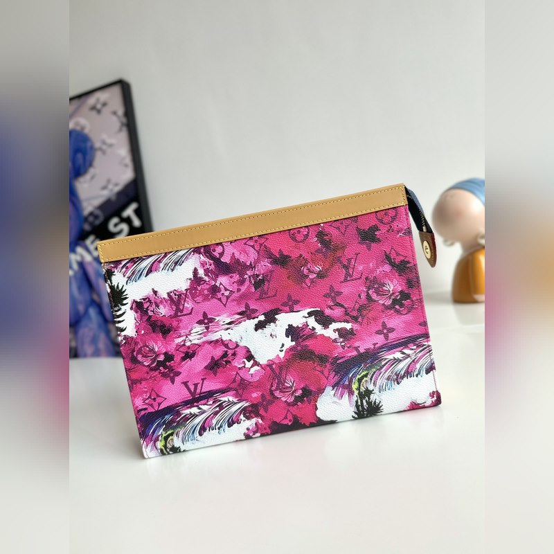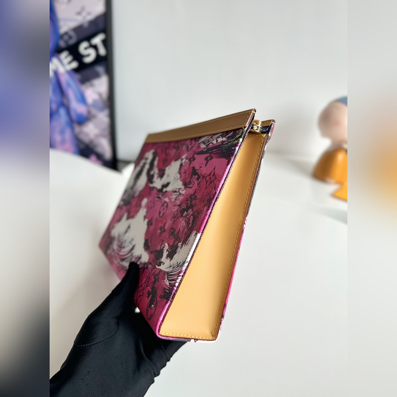 Ainutlaatuinen valokuva alkuperäisestä merentakaisesta M41696 surffausruusunpunaisesta. Tämä Pochette Voyage -kytkin on valmistettu Pharrell Williamsin luomasta Monogram Surfin -kankaasta, jossa on lehmännahkainen koristelu, ja se huokuu romanttista lomatyyliä. Korttilokero ja sisällä oleva paikkatasku voidaan säilyttää siististi ja ne voidaan sijoittaa myös muihin käsilaukkuihin, joten se on trendikäs valinta hienostuneen kaupunkilaukun rinnalle. Koko: 27×21×6 cm