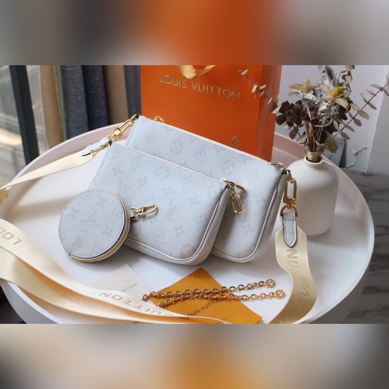 LV malli M44823 White Flower Pieni ja kevyt kolmiosainen puku vanhasta kukkakankaasta