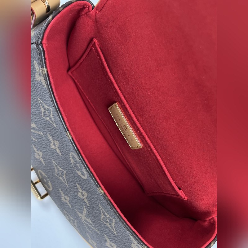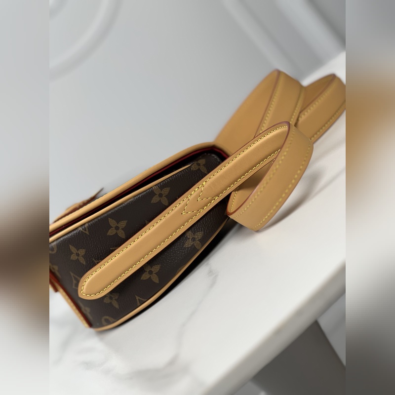 Täydellä vastapakkaussarjalla Overseas alkuperäinen satulalaukku M44860, eksklusiivinen real shot Nicolas Ghesquière tulkitsee uudelleen Tambourin-käsilaukun Monogram-kankaalla ja luonnollisella lehmännahalla. Pieni ja kevyt kompakti kokoonpano vastaa päivittäisiin matkustustarpeisiin. Mukava olkapää tai tiukka crossbody. Koko: 18×15×8 cm
